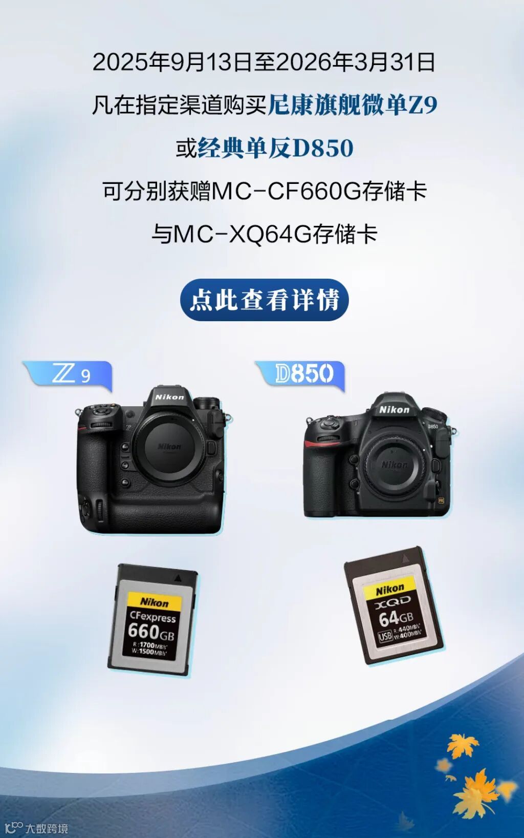 5.购买尼康Z9,赠送660G尼康原厂CF-E卡*1;购买D850,赠送64G尼康原厂XQD卡*1;购买Zr,赠送斯莫格兔笼*1