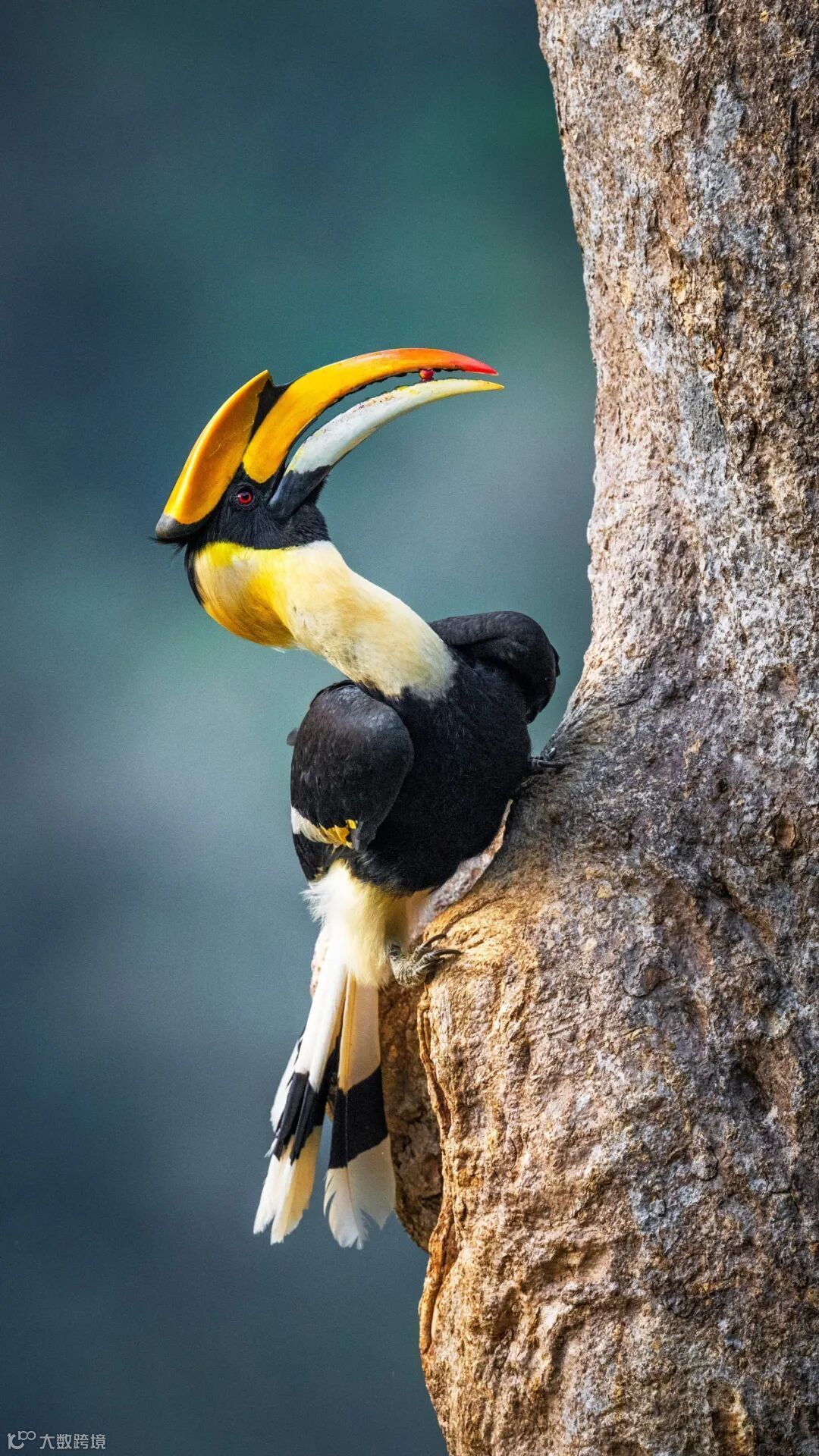 我在云南盈江有幸捕捉到了双角犀鸟的身影。为了帮助雌鸟孕育新生命,眼前的这只雄鸟每日往返于森林与树洞之间寻找食物,并将食物从树洞的缝隙中递给雌鸟。