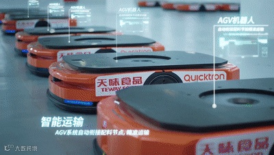 天味食品智慧工厂是复合调味品行业第一个使用大规模移动机器人集群的智慧工厂。
