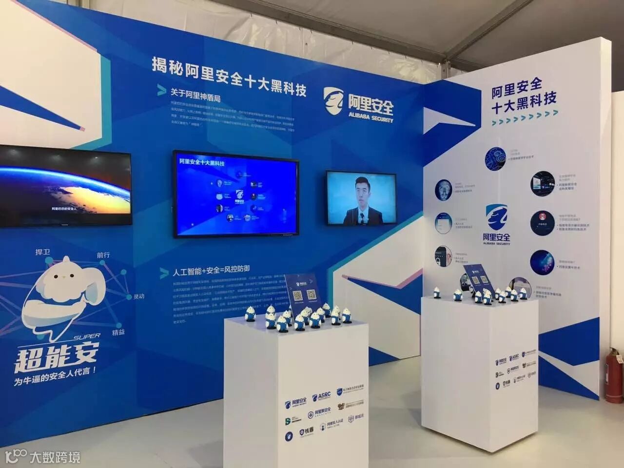 顺着园区往里走,走在3-4号楼前,矗立着一个不小的展馆:“阿里巴巴技术互动展”,里面展出了包括人工智能实验室、天猫、蚂蚁金服、阿里云、闲鱼等在内的22个部门的科技成果 !