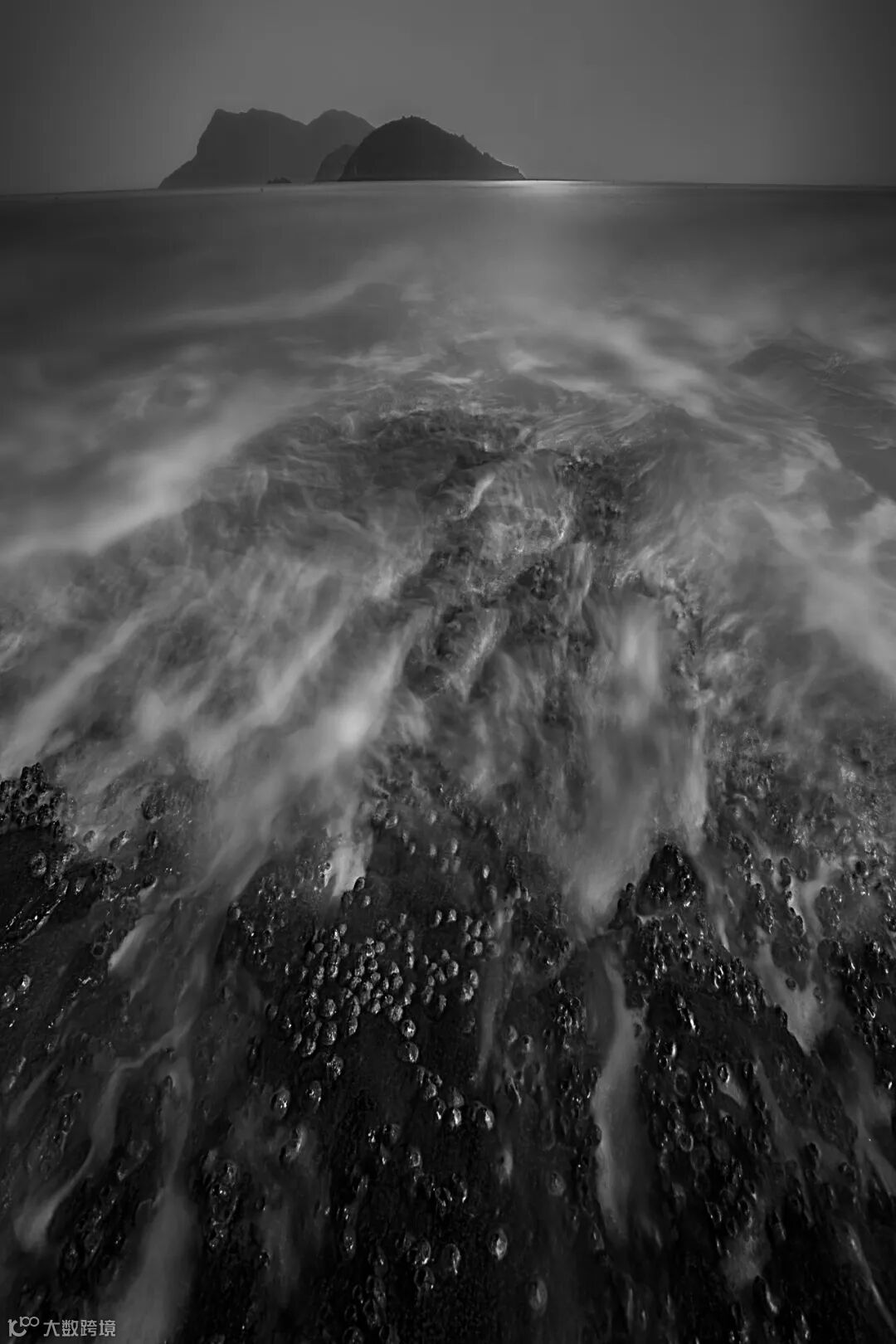 《浪迹·山水》中运用水墨画出来的沙滩,体现出大自然的神奇,形成美妙的中国山水画。