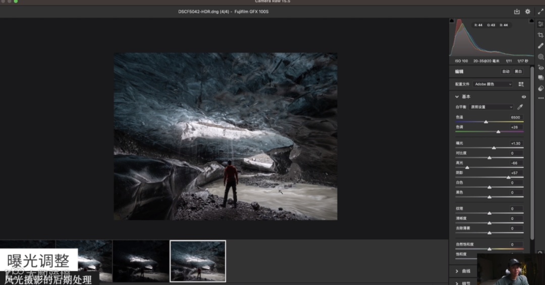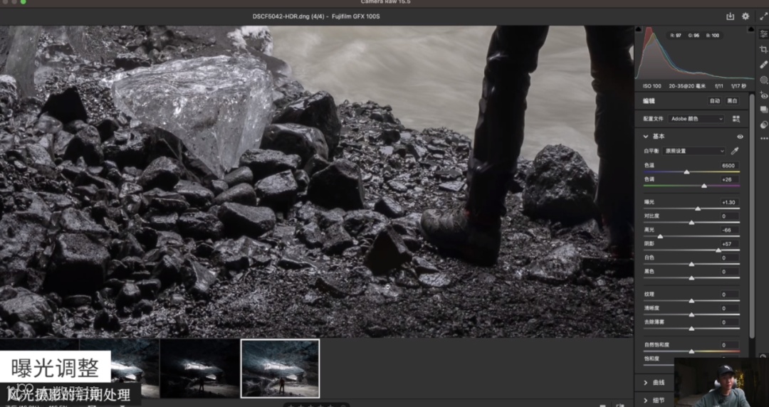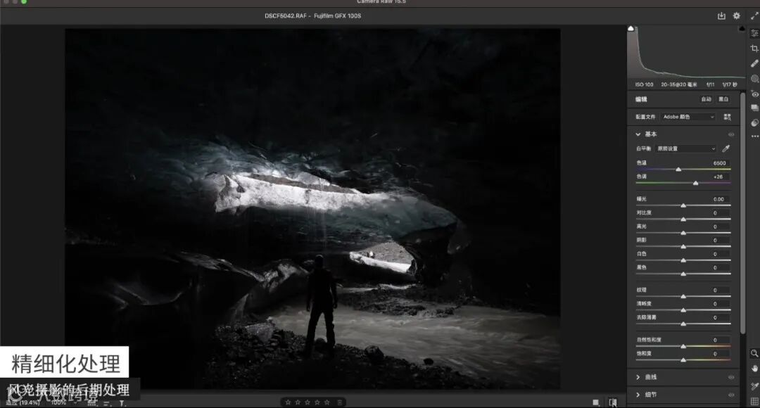 从下图中可以看到所有的细节都是非常清楚的,曝光+1.55,马上就亮了,这就是GFX中画幅相机的优势。