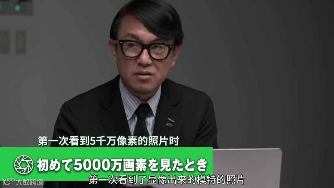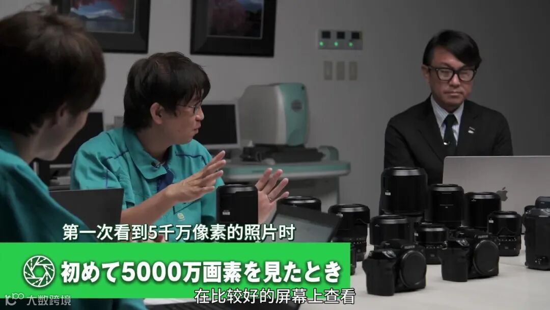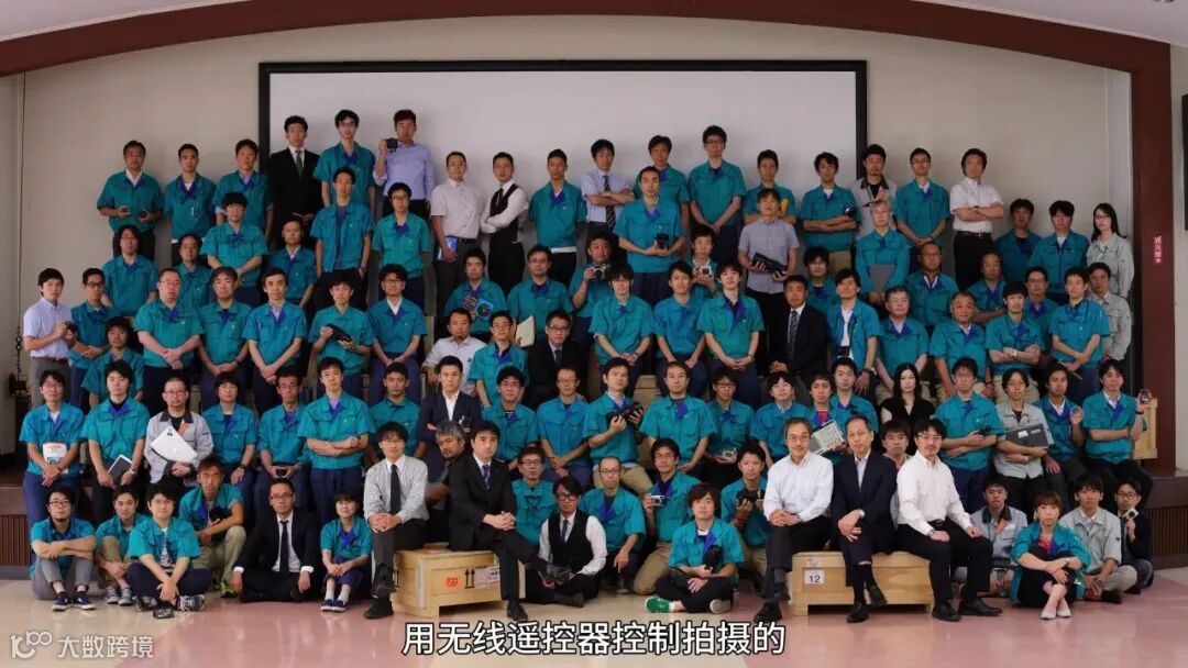 另一个重大的改变还属GFX100机型的时候,又是将我们带入了1亿像素,2019年6月发售,这个我们完全陌生的世界里,而且当时还做过测试,叫来了很多人拍了集体照片,这张照片实际上并不是用无线遥控器控制拍摄的,负责研发这个传感器的人在旁边这样拿着电脑,摄影师拍一下他的肩膀他就拍下照片,按照这样的流程,完成了拍摄,我印象非常深刻。
