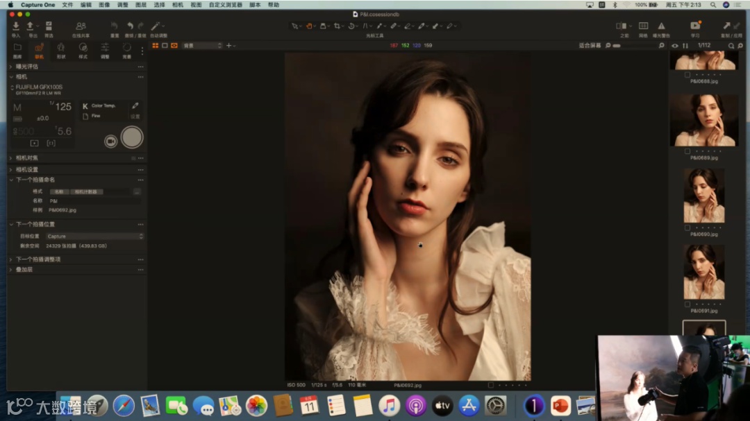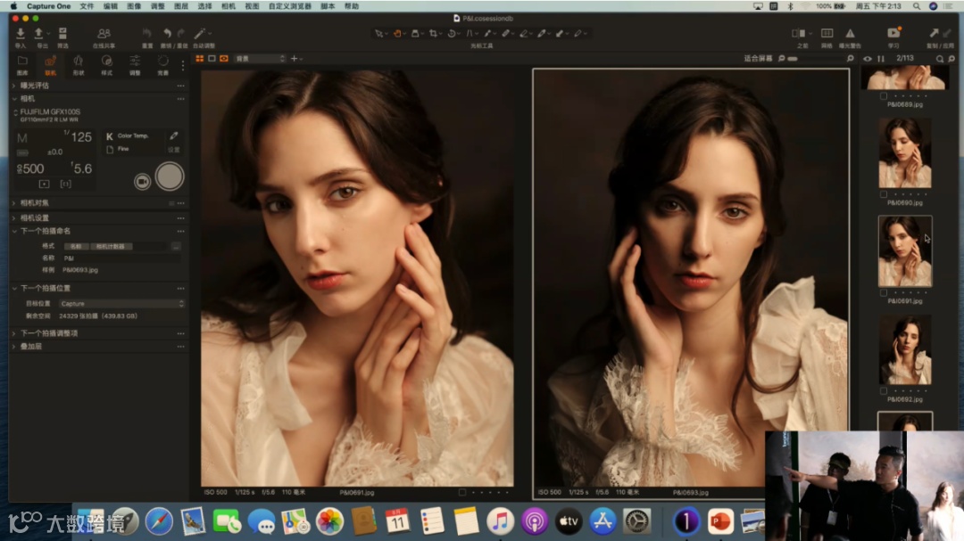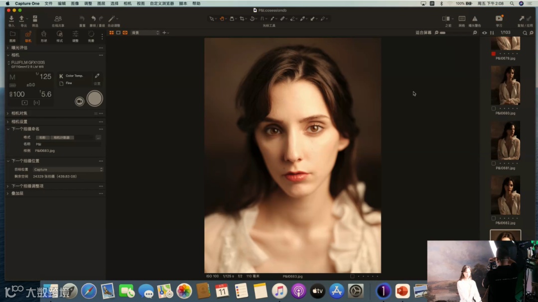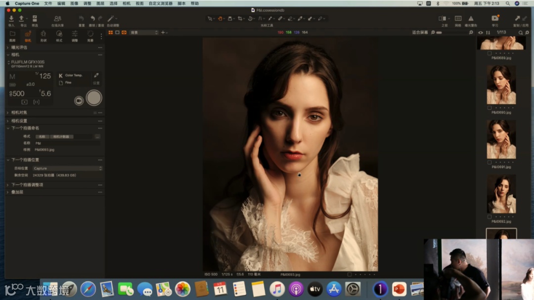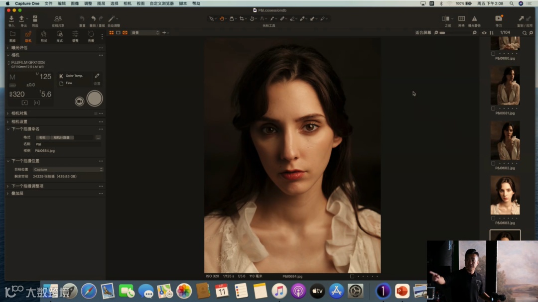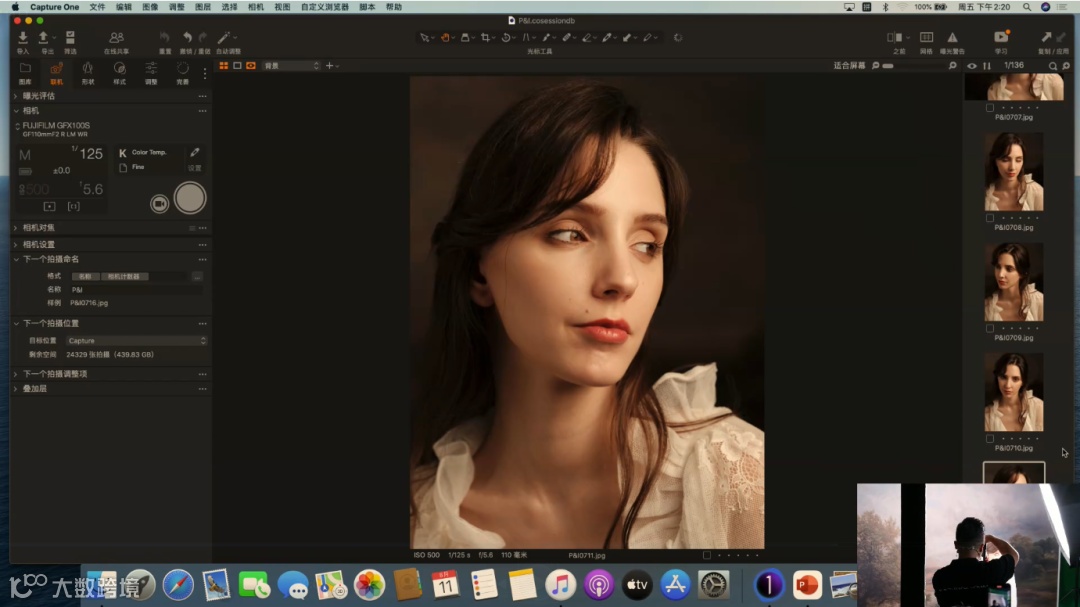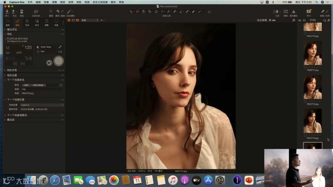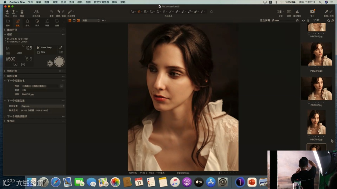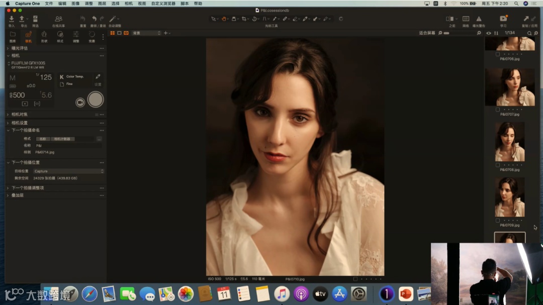 当前使用的是定焦镜头GF110mm F2 R LM WR,它的最大光圈可以开到F2,虚化能力强。这里提到一个关于光圈的使用技巧,目前是去拍半身和特写的画面,所以在这里不建议把光圈开到很大。