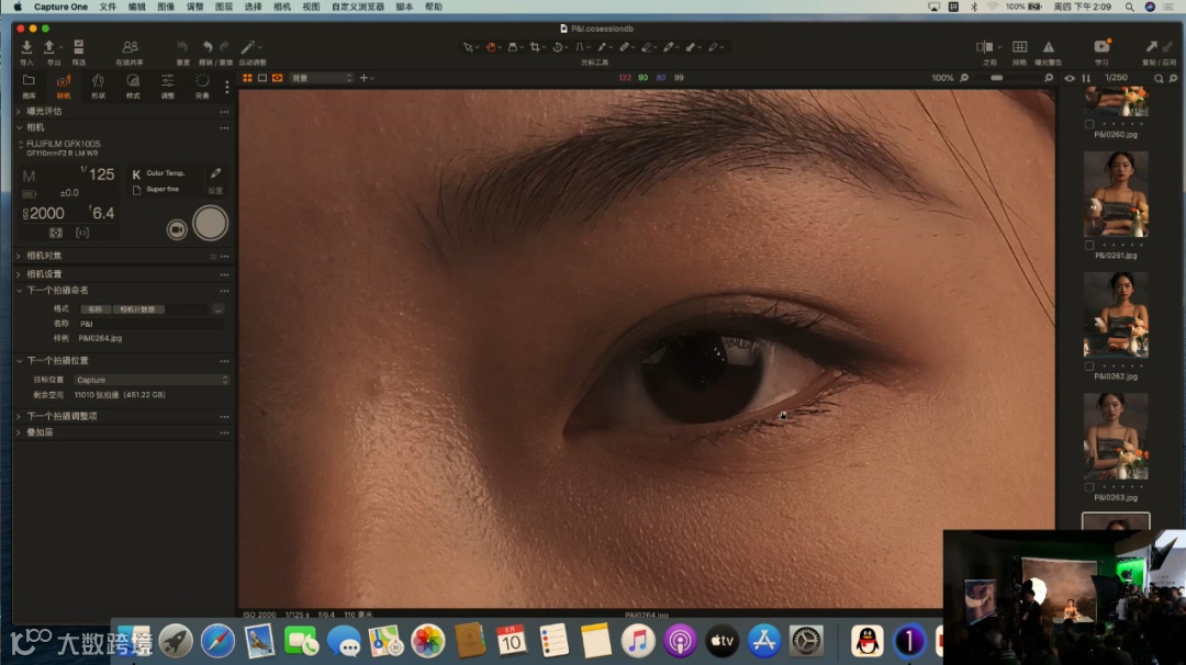 关于ISO,很多同学怕开高了以后噪点会很严重。接下来做个小小的测试,先把灯光亮度调低,然后把ISO调到1600。把图片稍微放大到眼睛的位置,可以看到这个噪点的控制是很优秀的。