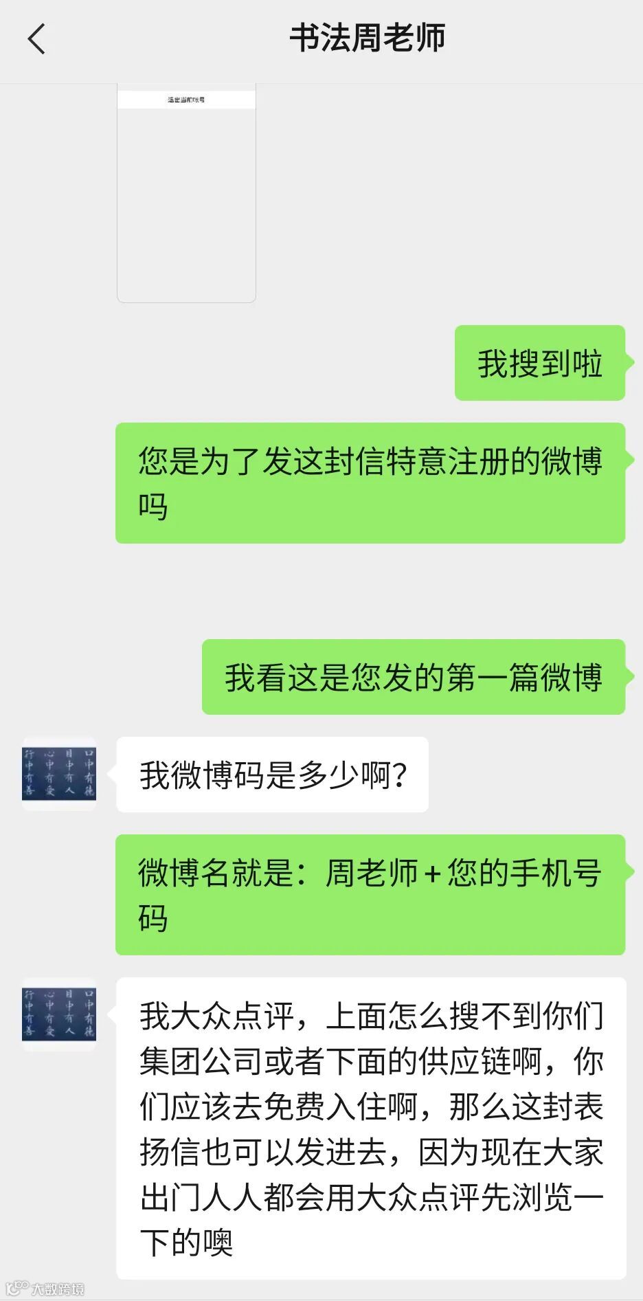 周老师特意注册了大众点评和微博