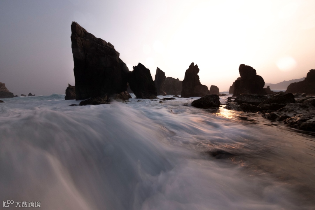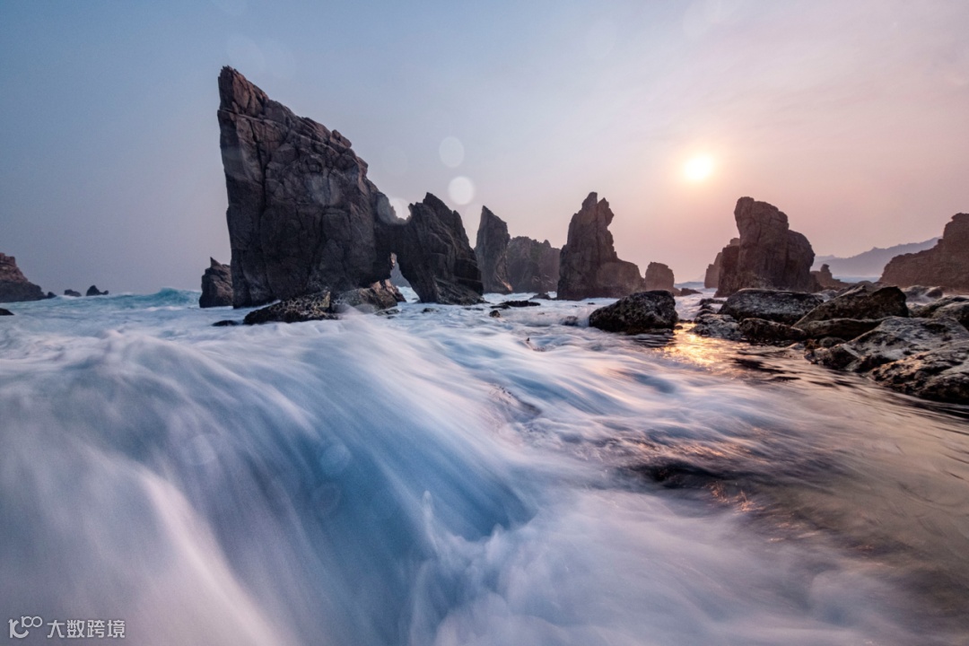 这是鲨鱼牙齿海滩的一座礁石,肉眼看这个礁石不是很高,也不是很尖。海滩非常难拍,因为你要等待浪花打过来的最佳时刻,还要刚好能够捕捉下浪花最完美的状态,如果还想在日出日落进行拍摄,那很难在仅存的一小时内抓到非常漂亮的浪花。