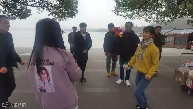 在花港观鱼活动点,各小组需要在景点内寻找2-3名游客,与小组成员组成5人团队,完成踢毽子游戏。只要毽子连续10下不落地,即可通过本关游戏。