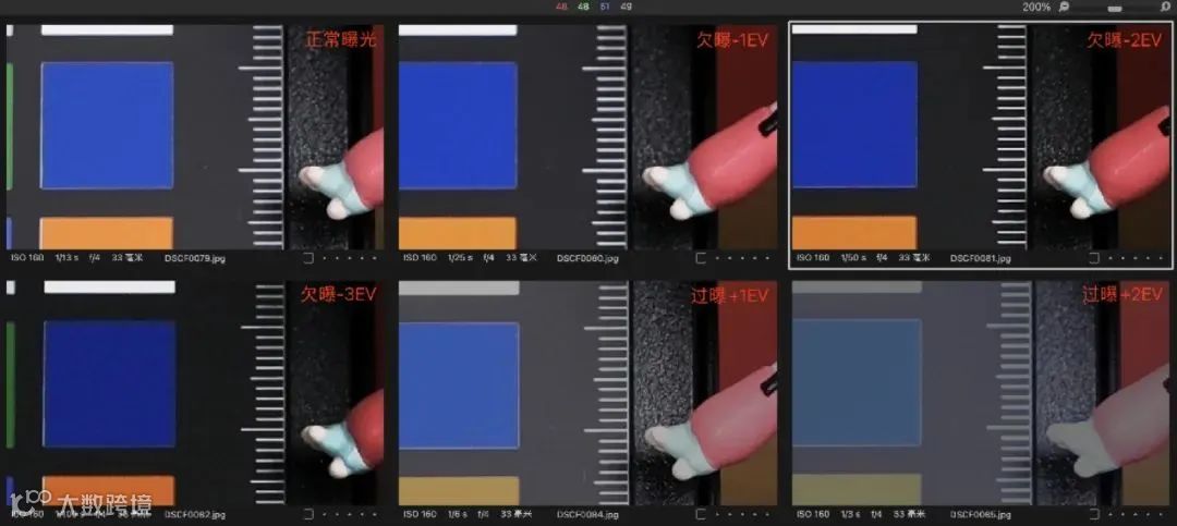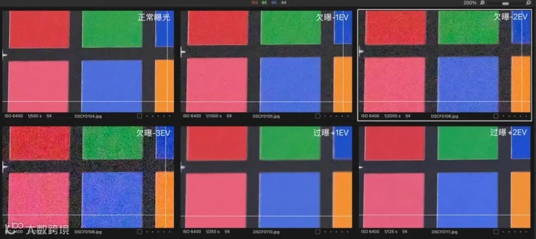 ISO6400已经是高感宽容度测试的极限数值了,富士X-H2S的宽容度表现依然也不错。在这个级别的测试中,我们看到-3EV曝光的修复,画面始终没有出现偏色,仅仅是噪点的增加。