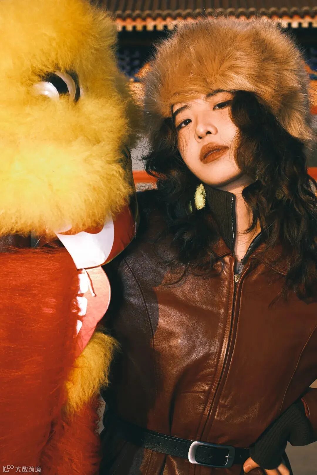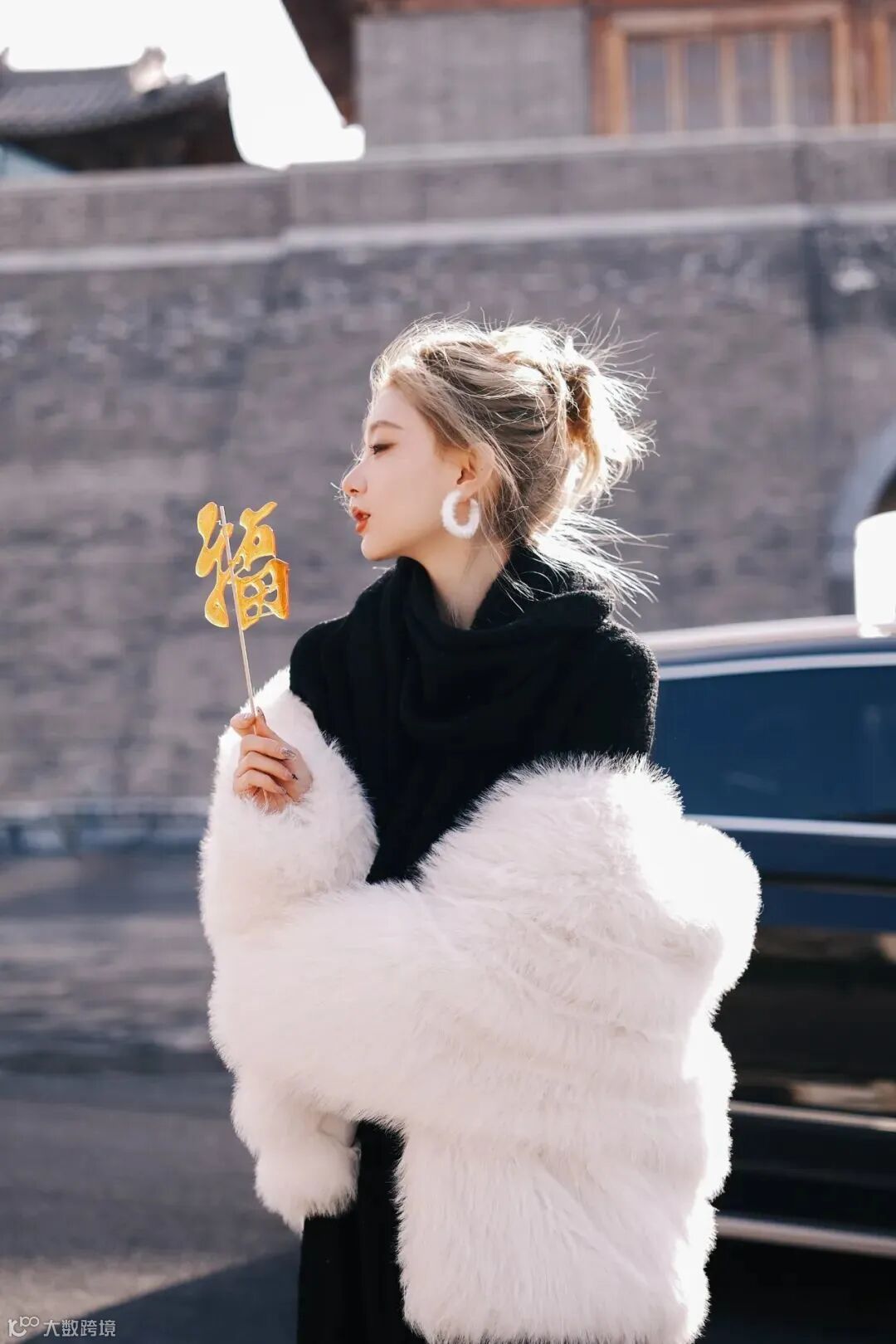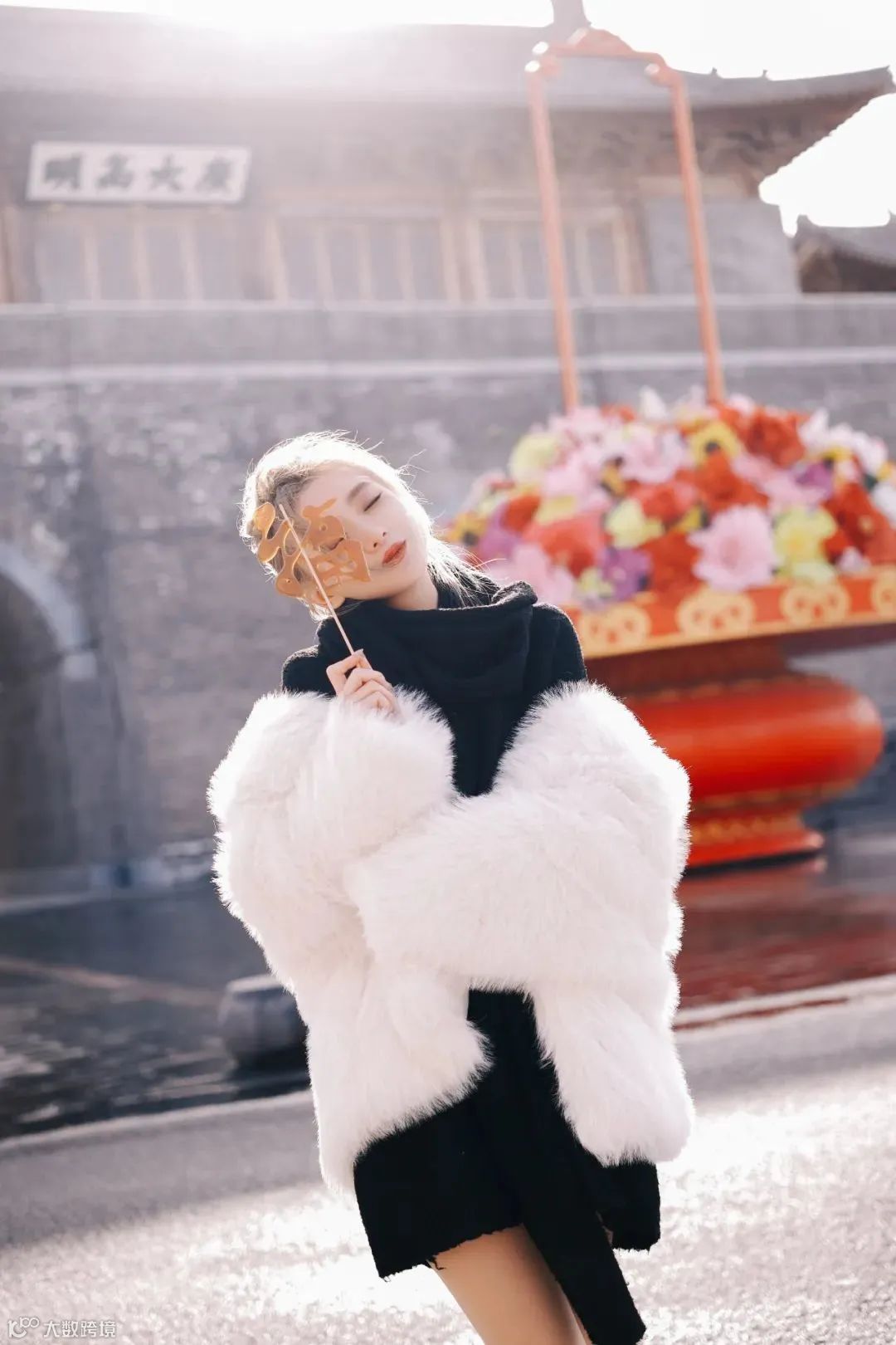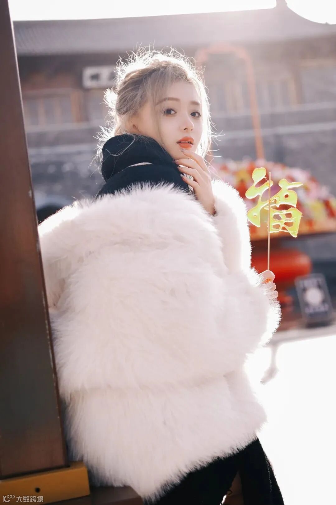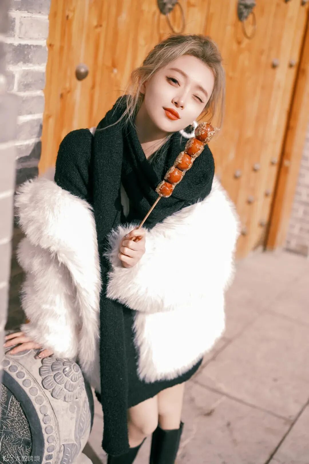 街拍和新年主题的结合可以又时尚又复古好看,在人物的穿搭造型上也可以不拘束于浓重的大红色,手中的糖葫芦成为一点点新春氛围的点缀也显得刚刚好。