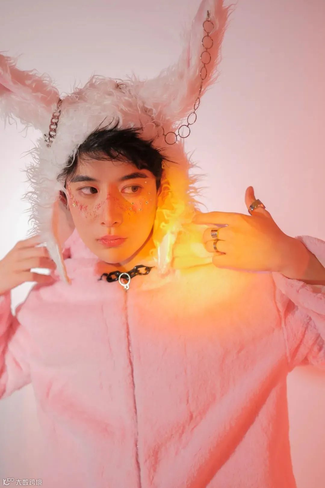 在创意妆造方面,兔年可以发挥的地方很多,粉色与白色的搭配,加上温暖渐变的灯光,可以拍出不一样的新年肖像照。