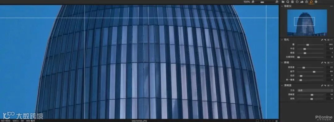上图是在广州猎德大桥上手持X-H2S拍摄远处珠江新城大厦,搭配XF100-400mmF4.5-5.6 R LM OIS WR用1/20秒的慢门拍摄。将照片放大100%我们依然可以清晰看到建筑的外立面轮廓没有发生任何形变。由上可见在昏暗的“蓝调时刻”,7挡五轴防抖对于拍摄的重要性。