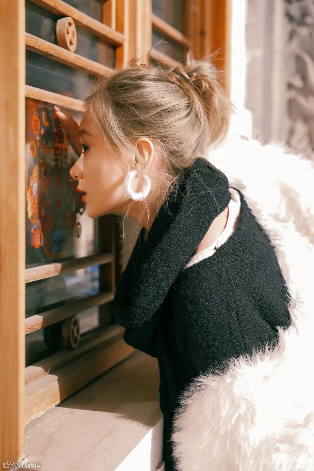 贴满了窗花的古城人家,到处都是浓厚的年味儿,利用玻璃的反光可以照亮人物的面部,若隐若现的光影,可以增加画面的生动氛围。