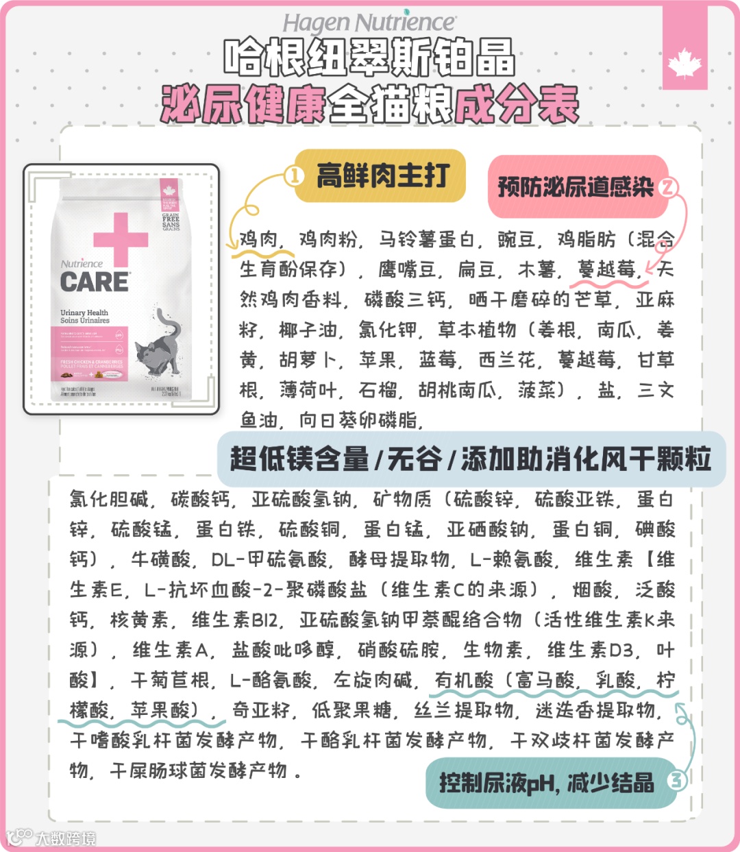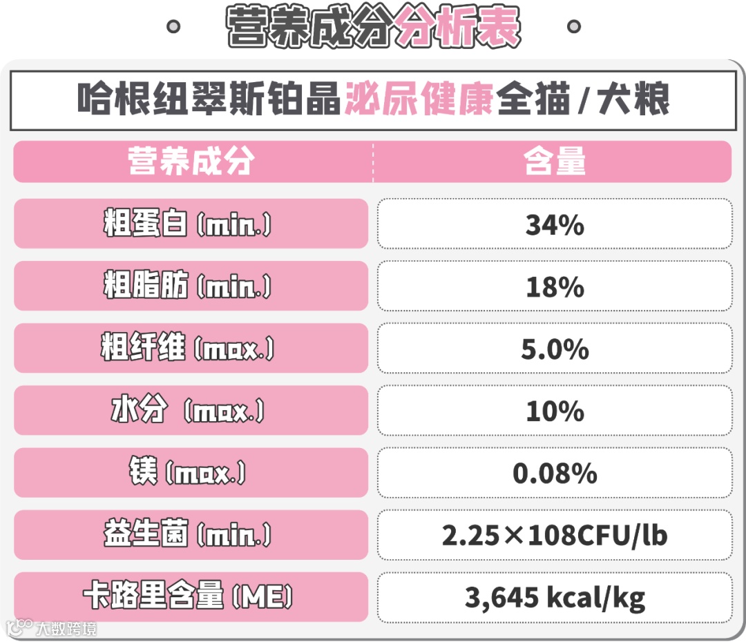 最后附上纽翠斯铂晶泌尿健康猫粮配方表和成分表,给大家参考
