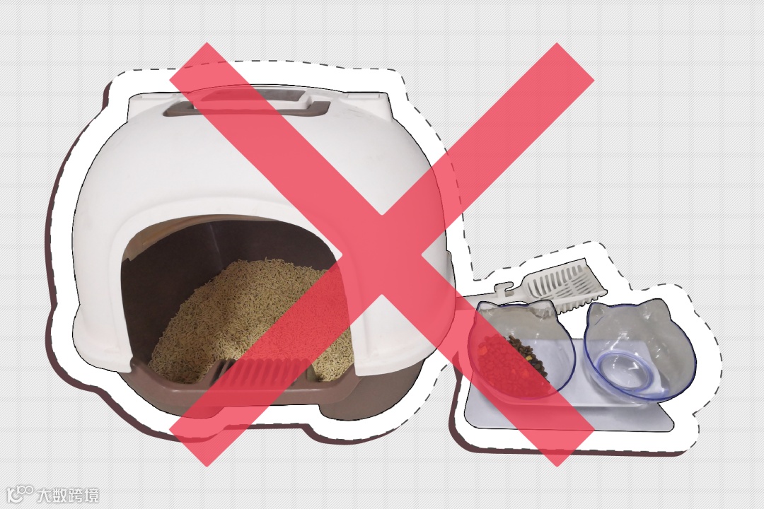 很多铲屎官习惯把猫主子的东西都放在一起,食盆水碗旁边就是猫砂盆,这样放,粮和水容易受污染。先不说有没有内味儿,光是在厕所旁吃饭,就挺膈应猫的。