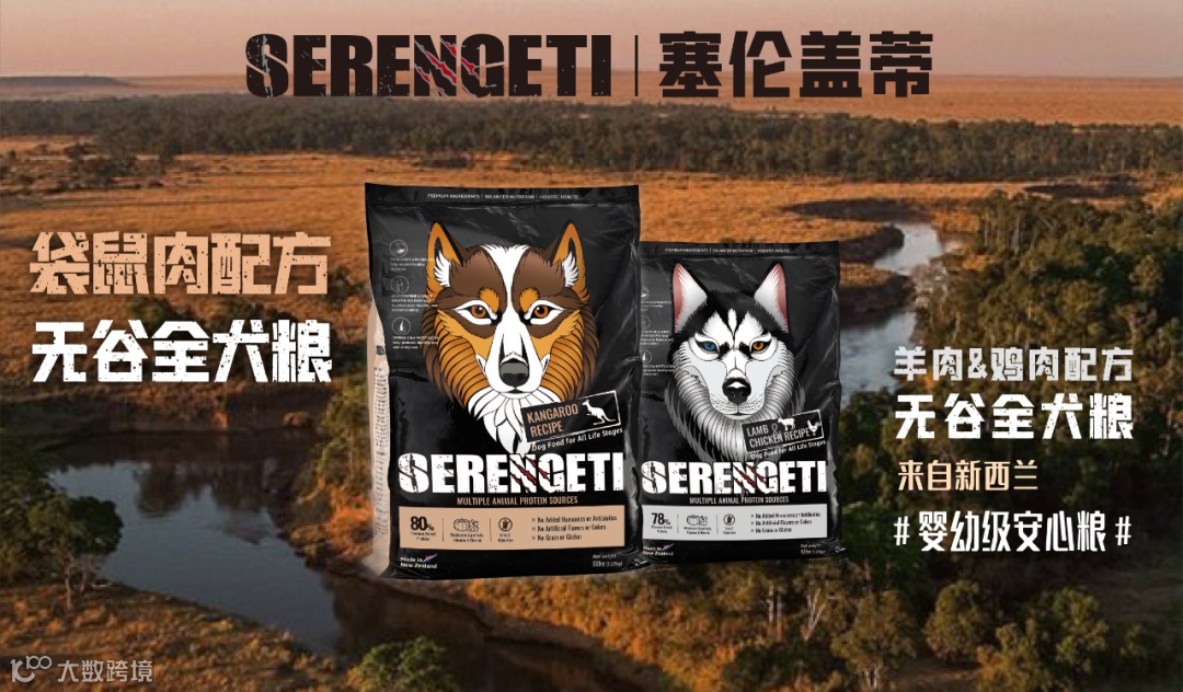 即刻打开淘宝搜索“塞伦盖蒂狗粮”,认准全球易供防伪标,买它!