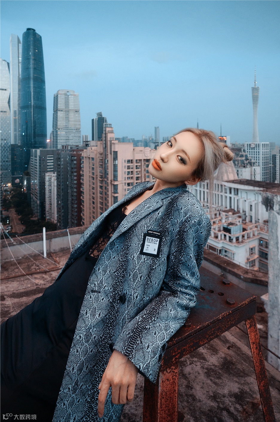 第一组我选择在楼顶上进行创作,机身搭配适马的fp L,并使用机内的青橙色预设进行拍摄。通过对适马10-18mm F2.8 DC DN | Contemporary镜头的巧妙运用,楼顶周边的建筑都形成烘托,削弱了建筑对人物的影响,让人物变得很有冲击力。广角拍人像目前是一种新的拍法,所以广角镜头在商业拍摄中也是不可或缺的镜头之一。