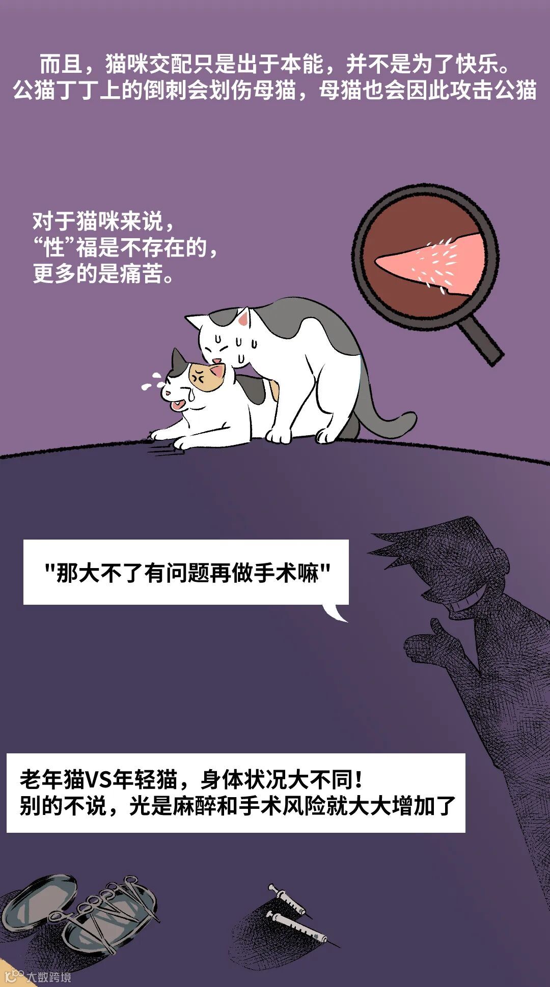 关于啪啪啪的体验,猫和人真的不一样,只有人类和海豚才会为了快感而啪啪啪。所以没事别老想着让猫享受性福,什么“要让猫咪啪啪啪,让猫爽一次,不体验就失去喵生乐趣“,那是你觉得,不是猫觉得。