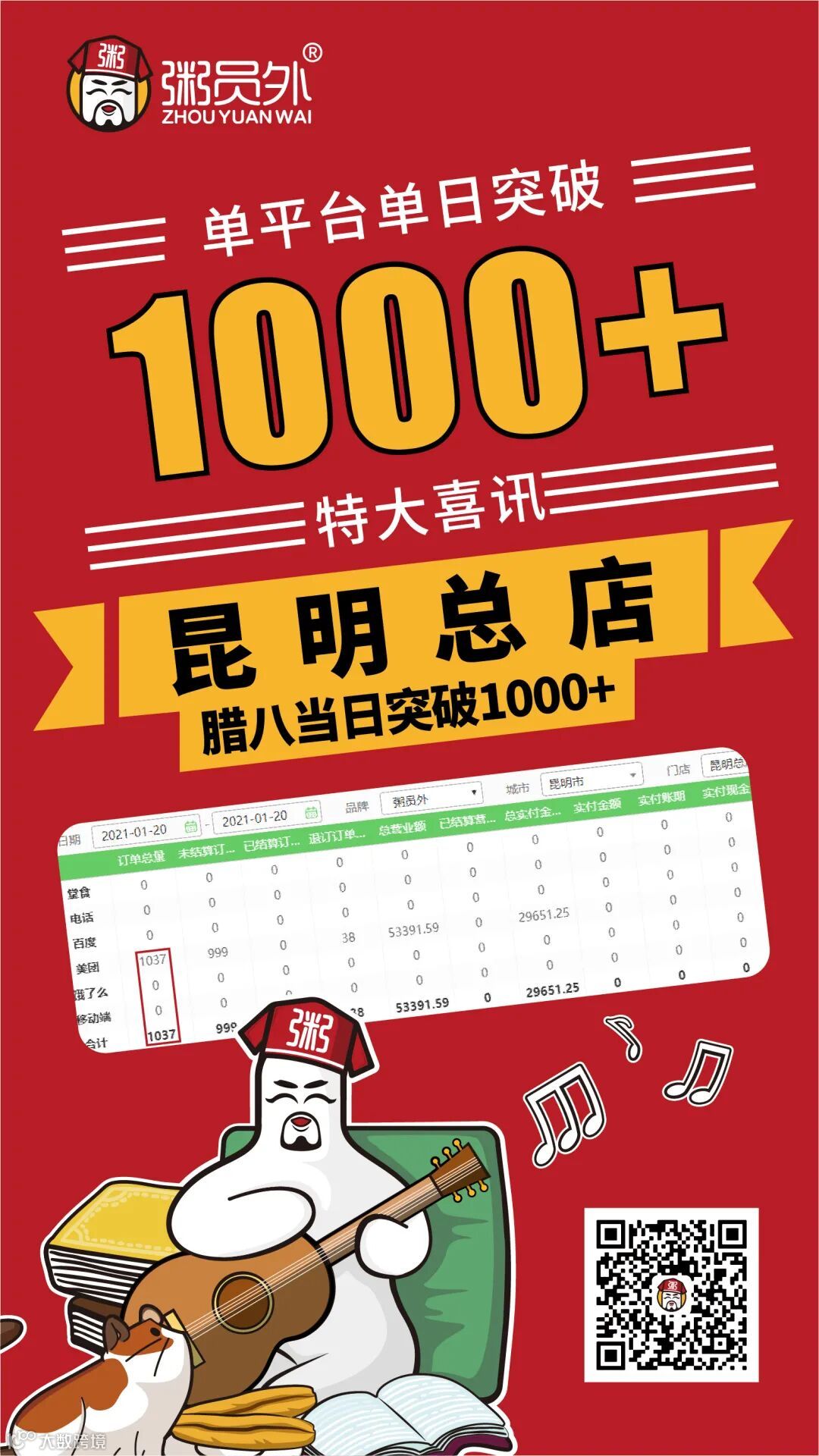 粥员外部分日销破千单门店