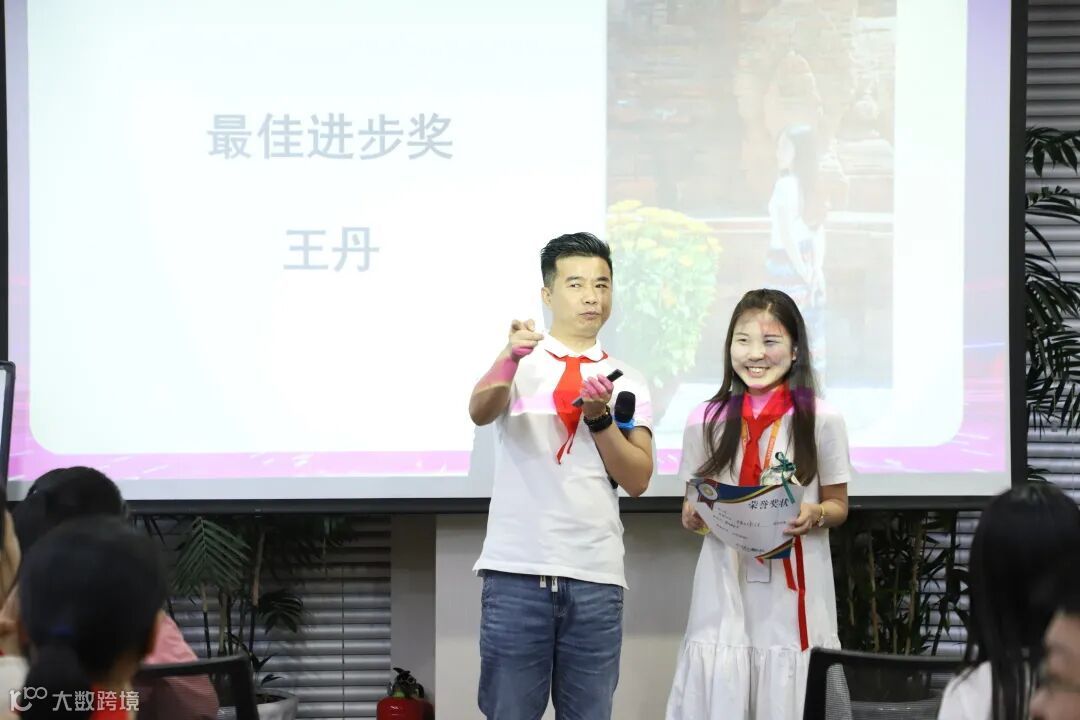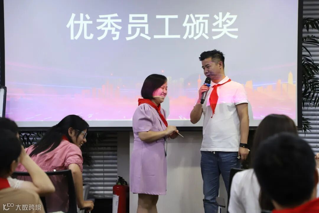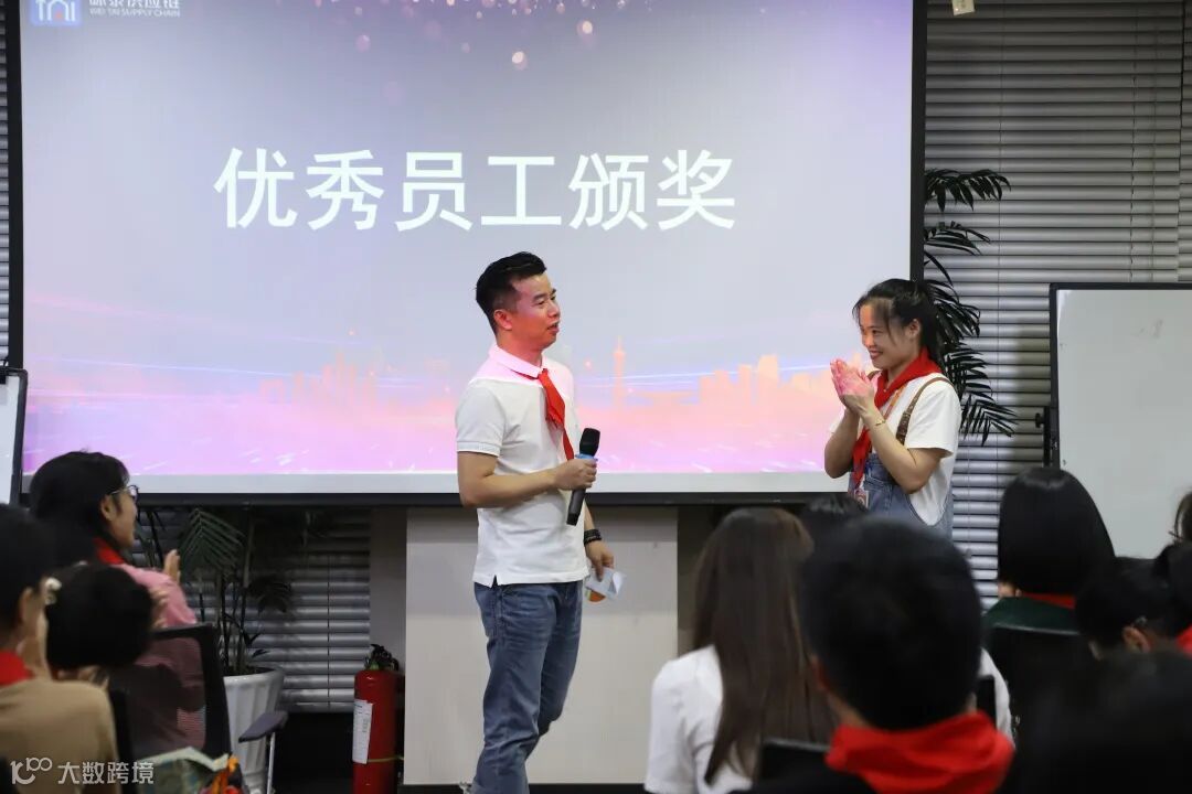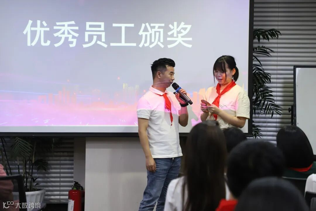 在神秘的表彰环节之后,大会还为优秀员工准备了颁奖仪式,奖品是由熊总颁发的100积分敬业福!