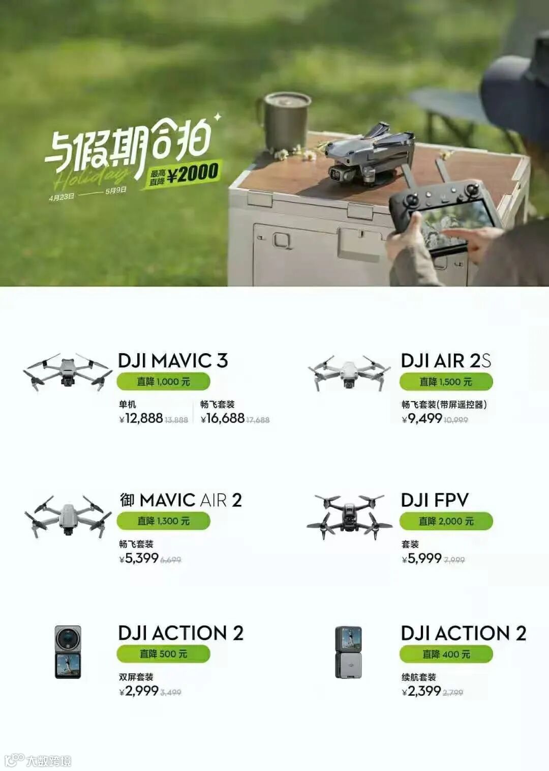 导读:活动时间4月23日-5月9日活动型号Mavic 3、Air2sAir 2、FPV、Action 2新海星大疆