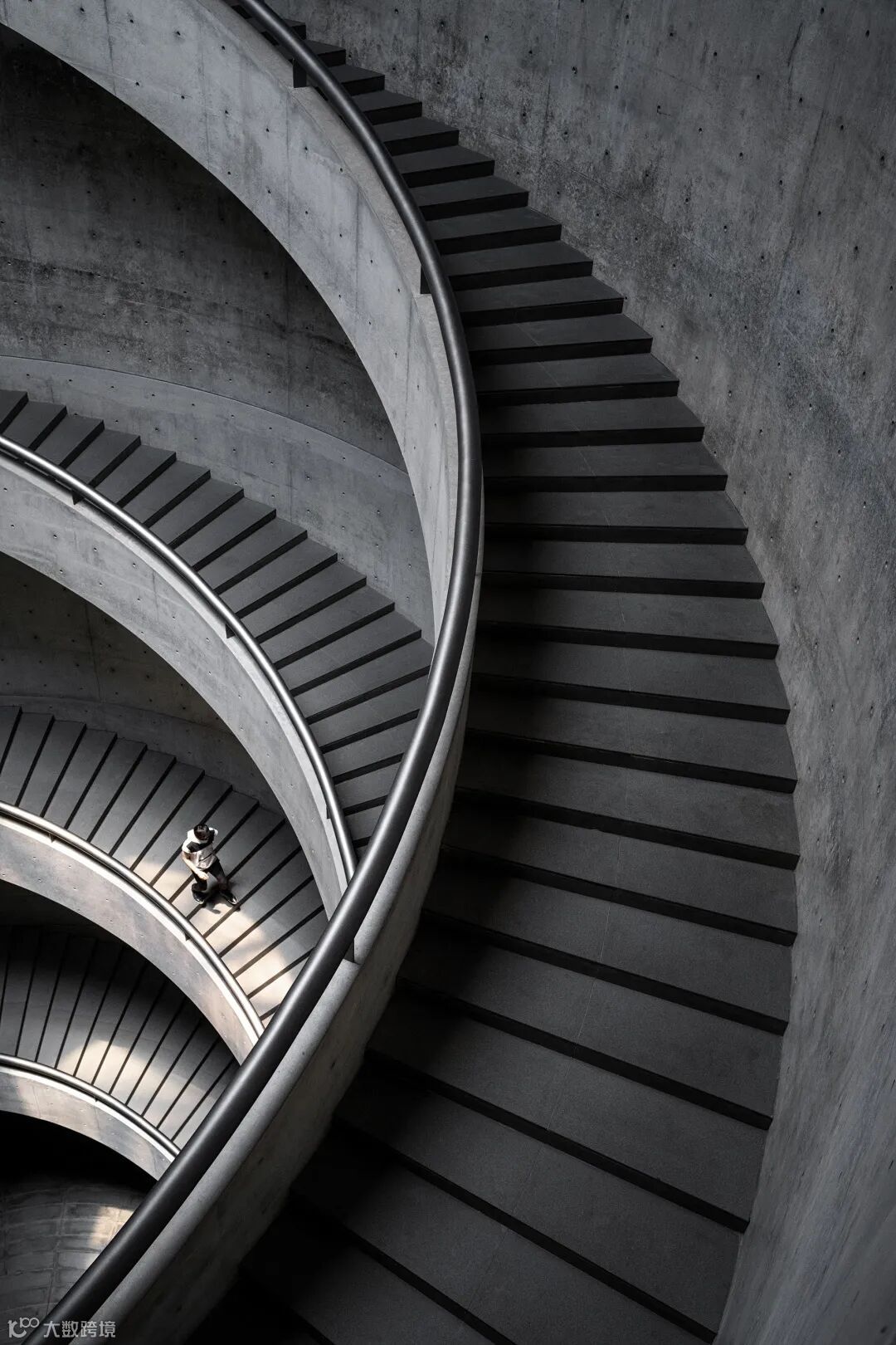 拍摄建筑内部的作品,我选择了位于佛山顺德区的“和美术馆”,因为这里可以算是珠三角地区天花板级别的内部建设结构。等待正午的阳光从透明穹顶直射下来时,我走上建筑顶部用尼克尔 Z 70-200mm f/2.8 VR S对准旋转的台阶,借助人物的出现让画面产生视觉兴趣点。