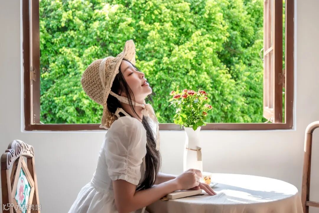 坐在窗前的复古圆桌旁,映入眼帘的是充满窗框的绿意。人像的拍摄往往少不了大光圈的运用,浅景深在营造虚化效果的同时,也为画面增添了氛围感。尼克尔 Z 40mm f/2镜头具有大光圈的优势,且在光圈全开的情况下依然可以产出锐利的画质,正如焦外的树影也化作了点点精致的圆形光斑。