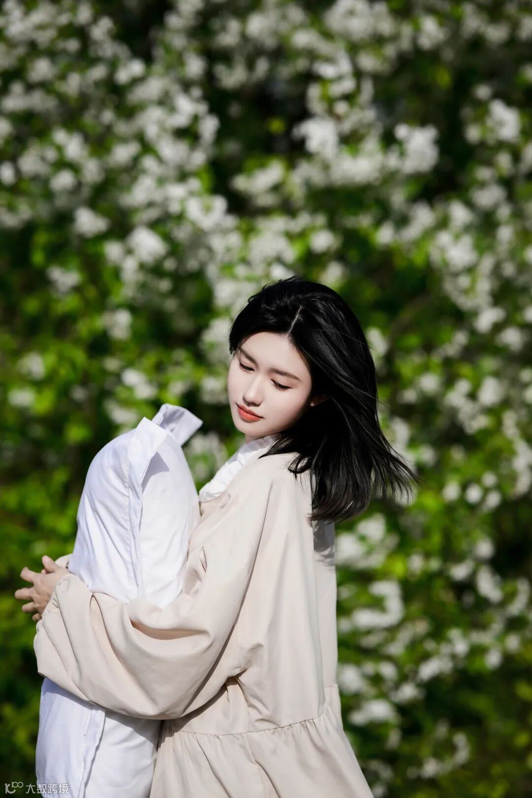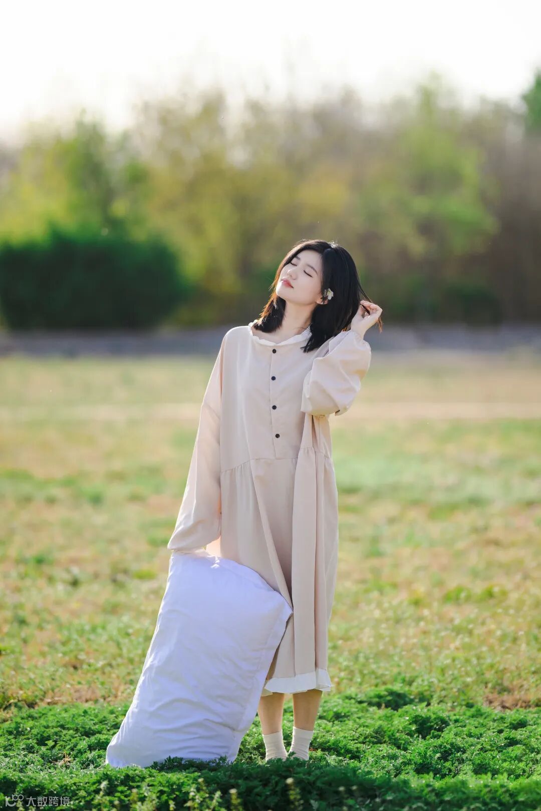 为了展现春日时光的主题,在服装和道具搭配上,我选择了一条清雅舒适的裙子和一个白色的枕头,来营造恬淡的休闲氛围。拍摄中,我借助下午3点之后趋于柔和的光线,让人物处于逆光的环境中,使得人物呈现发光的轮廓,增加自然的氛围感。在尼克尔 Z 85mm f/1.2 S镜头f/1.2的最大光圈下,可以实现美丽柔和的背景虚化,不但能够突出人物的表现,同时还能将人物的肌肤和头发细节表现得淋漓尽致。