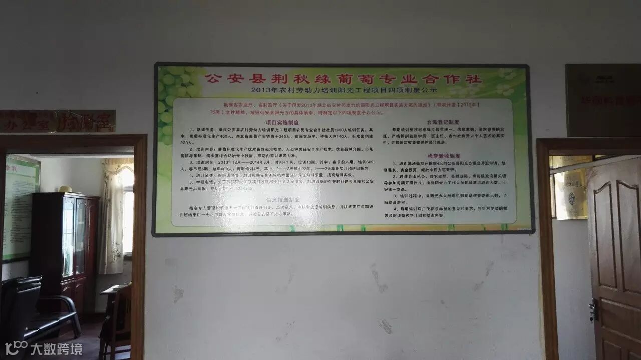 公安县荆秋缘葡萄专业合作社成立于2008年,是一家集葡萄栽培、技术研究、种苗繁育、示范、、销售为一体的股份制合作组织。位于荆州市长江大桥南岸、公安县葡萄集中产区埠河镇万众村207国道旁,地理环境优越、交通十分便利。 通过多年的探索和运作,形成了比较完善的合作组织体系:拥有科研基地200亩,种植面积近万亩,其中大棚种植面积3千亩,种植葡萄早、中、迟熟当家品种15个。2009—2012年被公安县委、县政府授予“先进农民专业合作社”荣誉称号 “荆秋缘”是合作社2009年注册的一个鲜食葡萄品牌,商标使用三年来市场销售和信誉度不断增长,在行业内知名度日渐提升,深受广大消费者青睐,2012年被评选为荆州市知名商标。 “荆秋缘”牌葡萄生产实现了生产技术、田间管理、产品采摘、品质检测、环保包装等全程质量监控,取得了国家葡萄无公害产品和产地的双重认证,部分产品取得了有机认证。由于不使用任何着剂、催熟剂,葡萄保持了自然着、自然成熟的天然种性。 2009年国家扶持合作社在辖区埠河镇兴建了万吨葡萄交易市场,改变了千家万户马路交易局面,为往来客商提供了良好的交易环境。