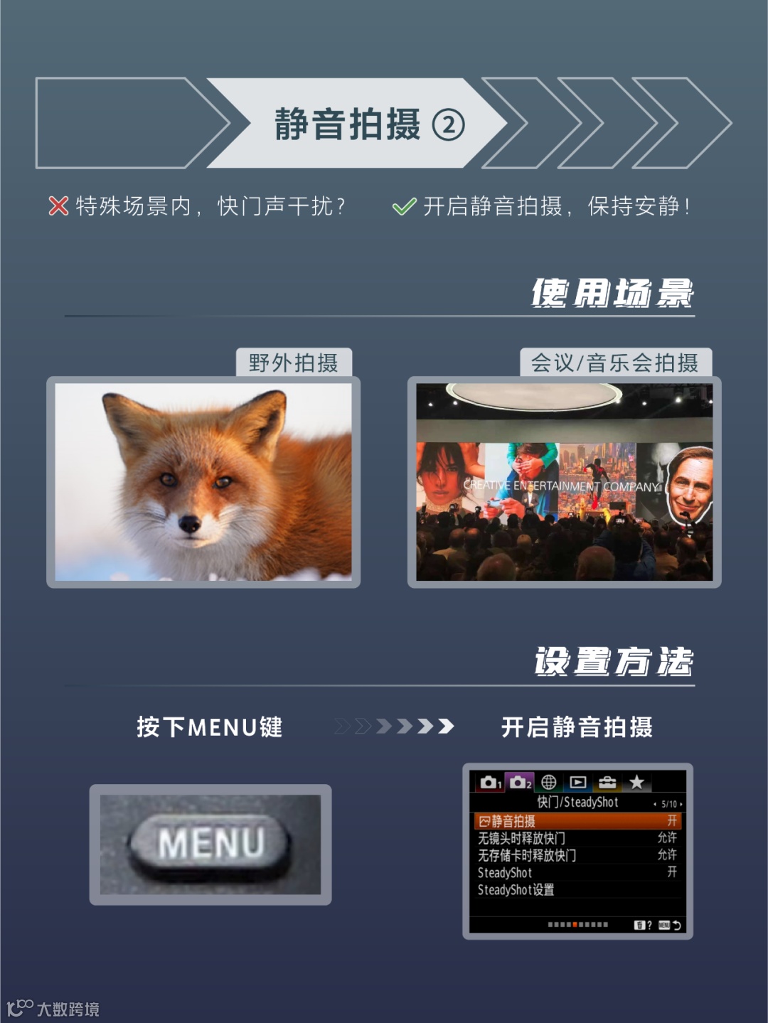 使用场景:会议、野外拍摄、音乐会……总有一些特殊场景,拍摄时我们不想打扰拍摄对象