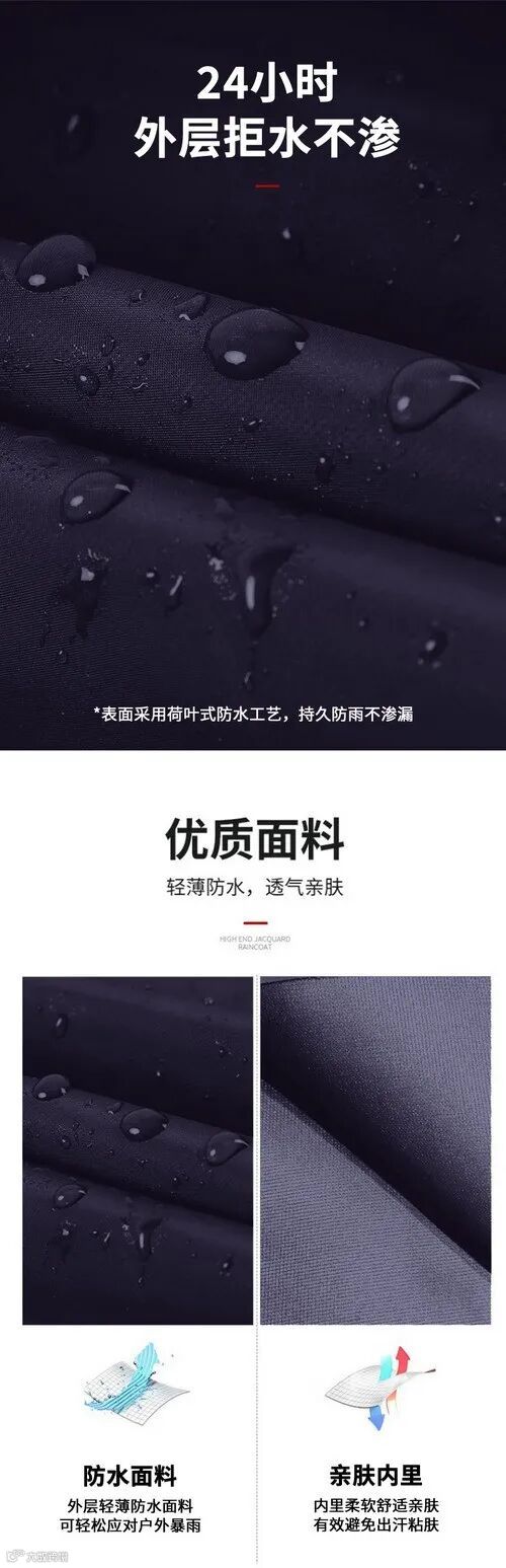 共泰雨衣主打暴雨级防水,能轻松应对各种强降雨天气。其外层采用荷叶式防水工艺,水珠在布料表面滚动而下,不会渗透,真正做到24小时外层拒水不渗,让你在雨中也能保持干爽。无论是上下班通勤,还是户外工作、雨天出行、露营徒步、渔业