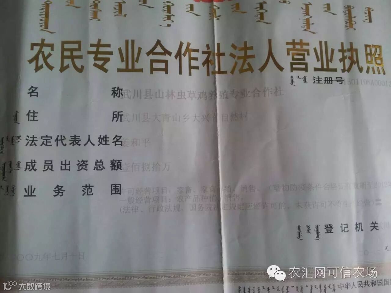武川县山林虫草鸡养殖专业合作社
