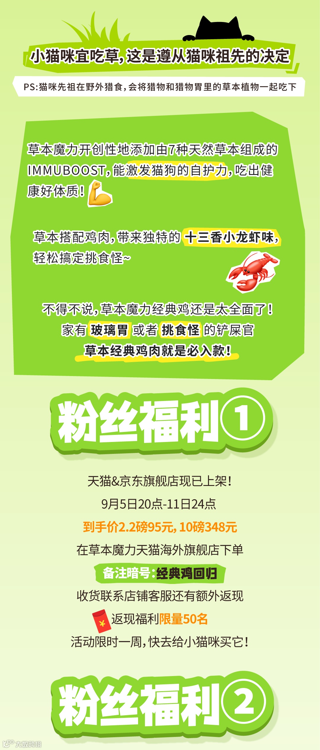 获得2.2磅草本魔力猫粮