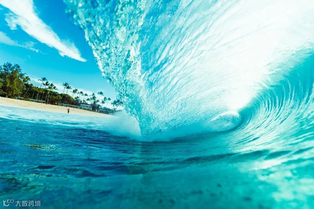 靠低拍摄,拍摄沙滩边的海浪时,试试蹲下利用低角度拍摄,这样更能突出海浪的形状和神态。靠低拍摄,可以带出海浪的形态。