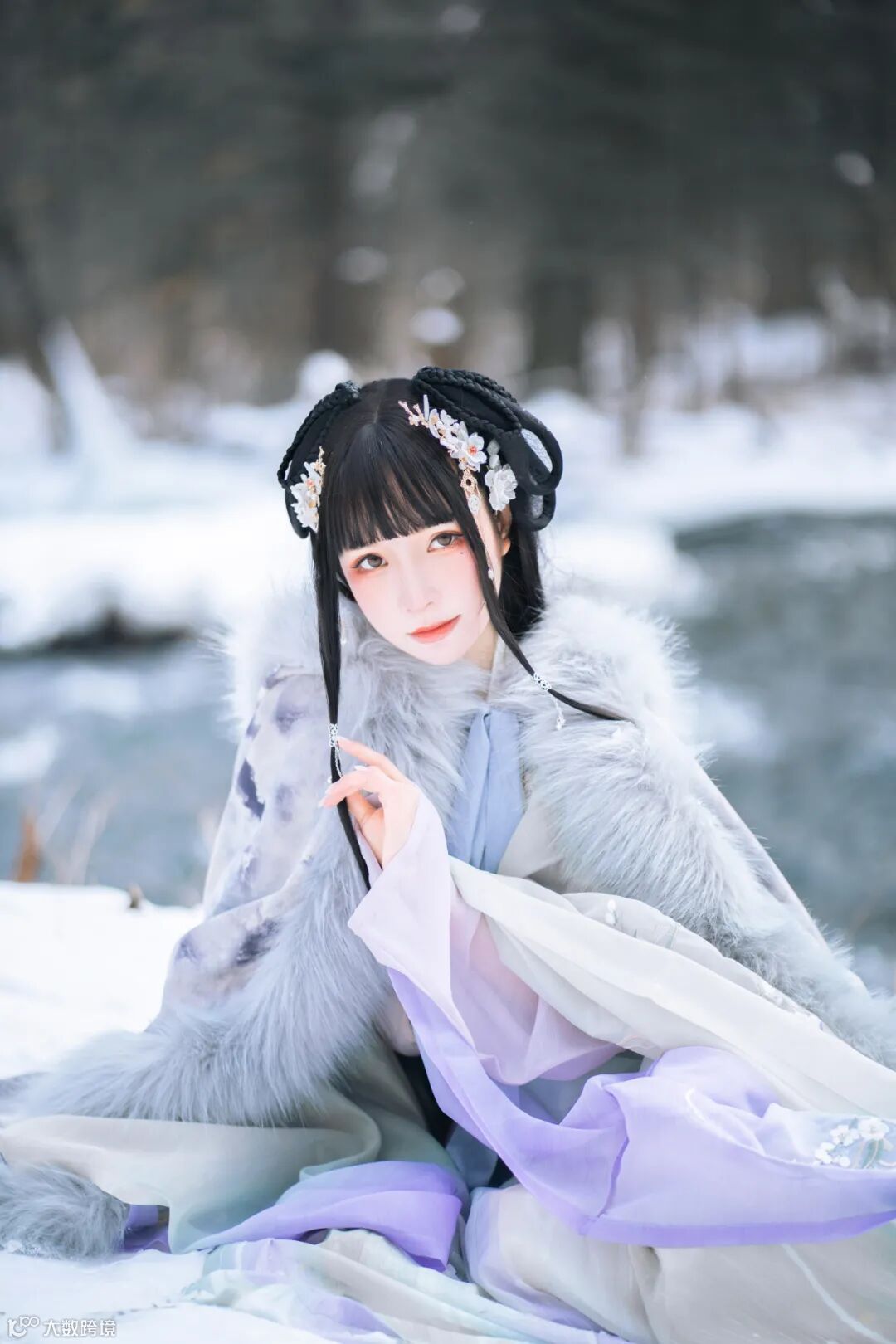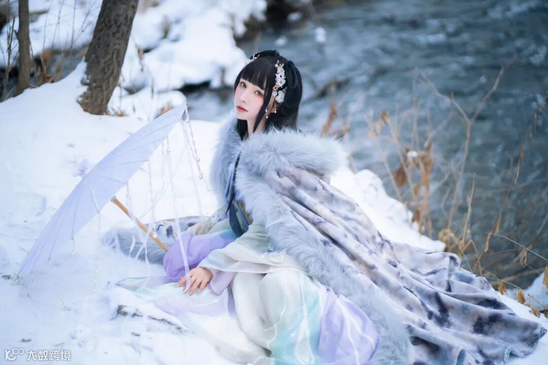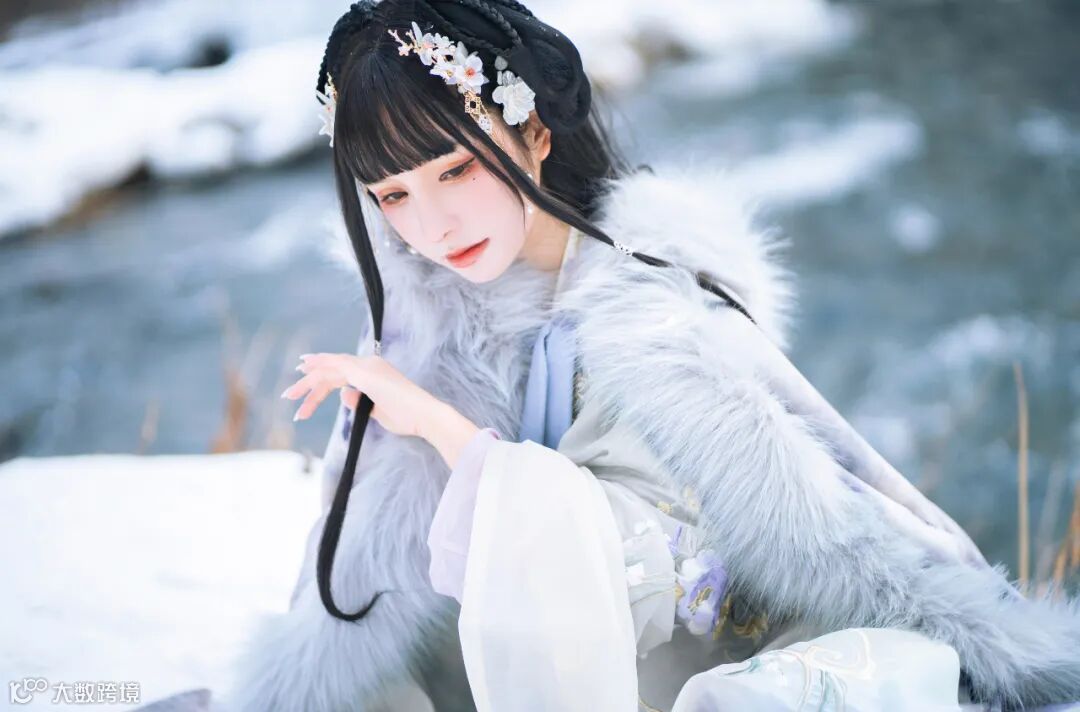 这里我让模特小姐姐斜卧在雪地的一角,刚好和坡的边缘可以在画面中形成引导线,将相机稍微举高些,通过Alpha 7C的翻转屏拍到一张照片。