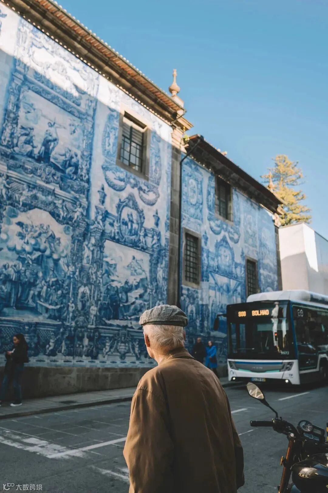 我使用了尼克尔 Z 14-30mm f/4 S 拍下了路旁一位老者遥望着教堂的瞬间,老爷爷身穿的暖色系外套与蓝白相间的青花瓷教堂形成鲜明的冷暖对比。14mm宽广视野能让我拍到主体人物的同时纳入下教堂的外墙。