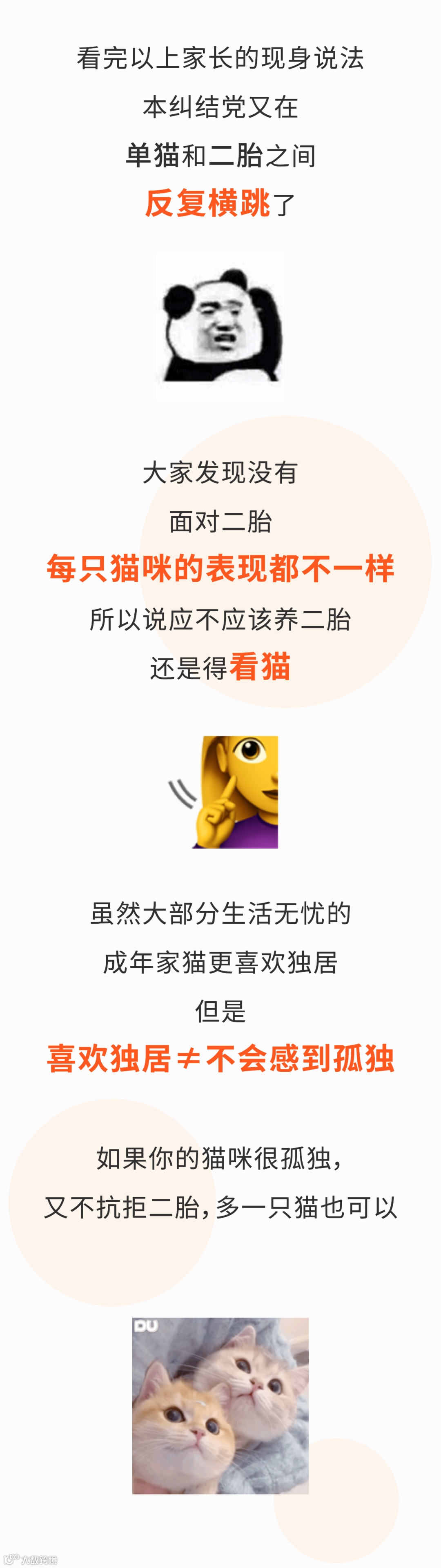 希望各位铲屎官先做好铲屎量翻倍,猫粮罐头翻倍等准备,再喜迎二胎。毕竟养猫只是你的一个决定,但对猫咪却是一辈子的事。