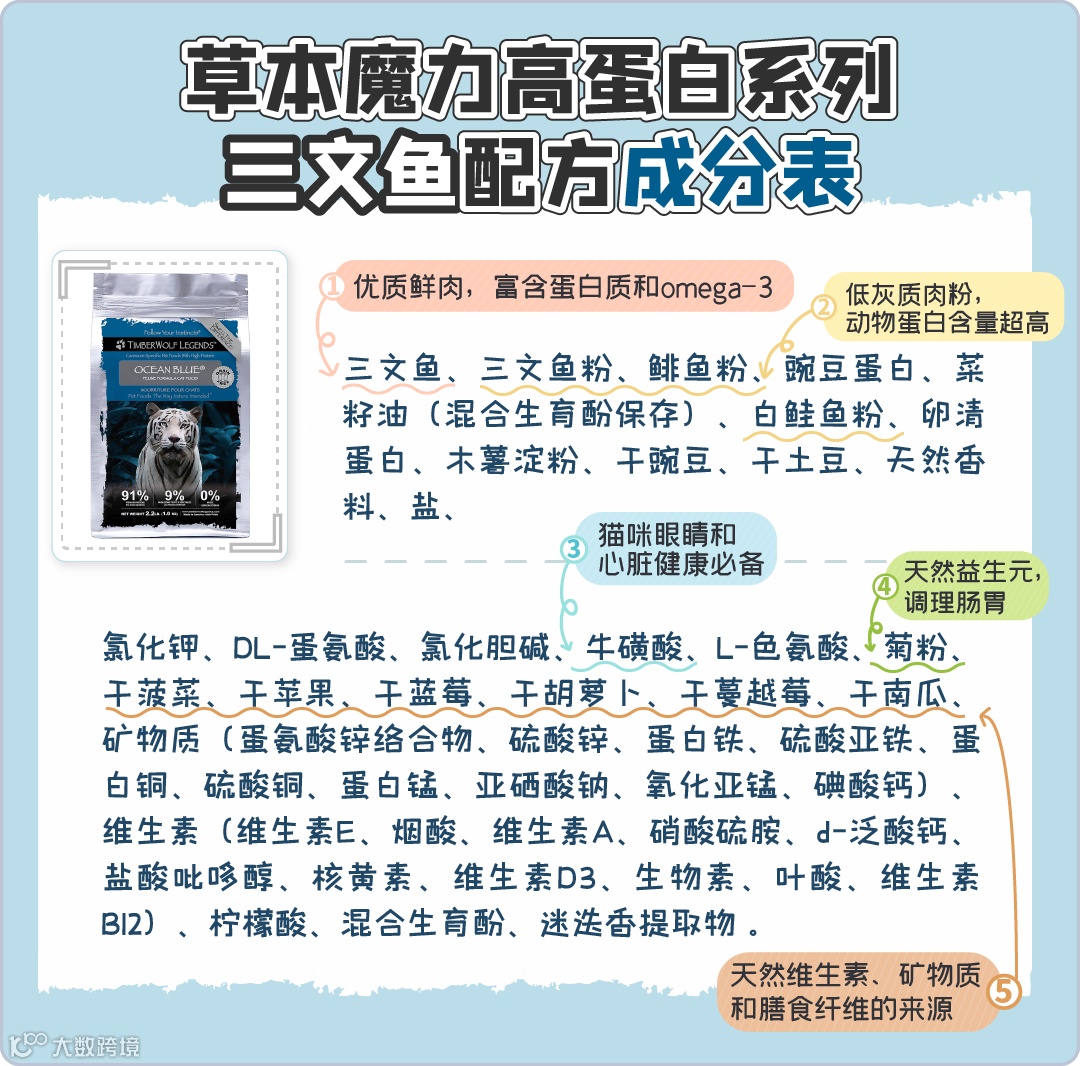 三文鱼配方是优质鲜鱼肉+肉粉,用的都是最好的低灰质肉粉,比鲜肉还贵,动物蛋白高达91%;