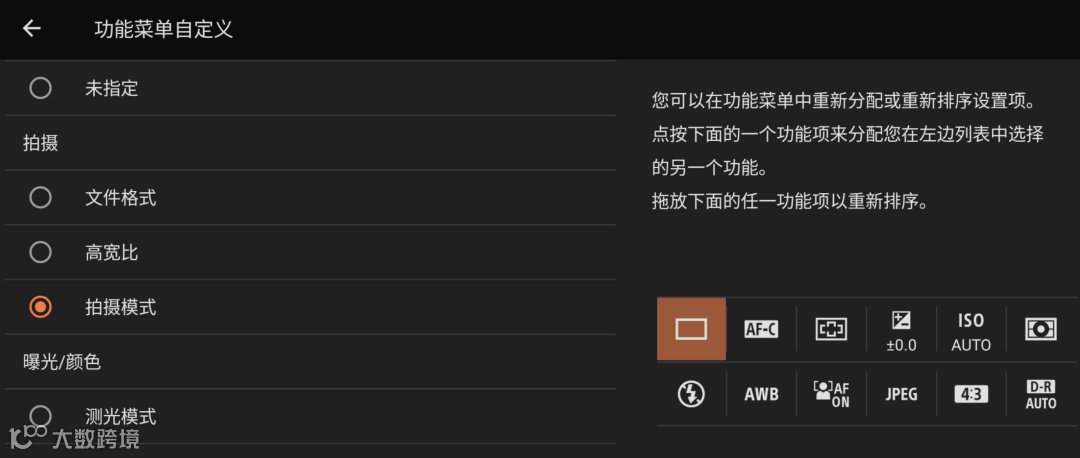 最值得一提的是下方的功能菜单,和微单上的功能菜单一样,一共有12个快捷功能,可以直接进行调整,极大的便利了我们的拍摄。