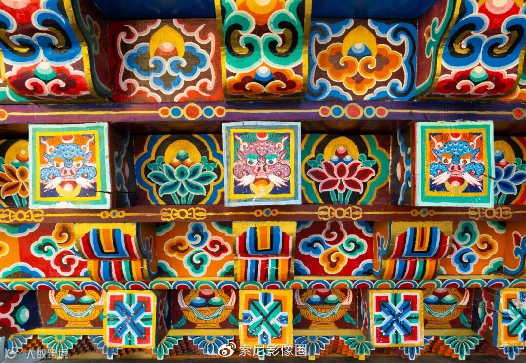 整个寺内布置恢弘美观,金碧辉煌,此外还保存有许多经典佛像和精美壁画,可以说是集藏族所有造型艺术于一体。想要将色彩斑斓的图案更好的体现出来,可以选择Alpha 6400创意风格功能中的“生动”模式,再进行微调,非常适合拍摄颜色鲜艳的物体和建筑。