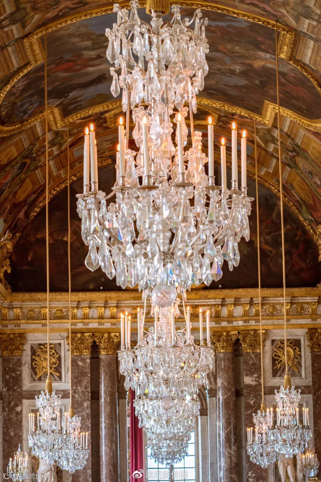 凡尔赛宫镜厅:又称镜廊,被视为法国路易十四国王王宫中的一件“镇宫之宝”,以17面由483块镜片组成的落地镜得名。它是法国的凡尔赛宫最奢华、最辉煌的部分。
