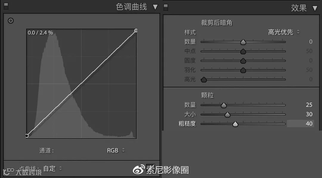 一定要说什么固定套路的话,必不可少的步骤就只有这两个:一是拉高曲线的阴影色阶,二是给照片加颗粒。拉高曲线底部,是因为胶片的黑色不像数码照片黑得那么纯粹。加颗粒则是为了模仿相片的磨砂质感。