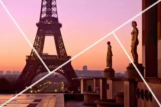 黄金三角形构图和三分法的方式非常相似。但并非矩形网格,我们把画面对角线连接,分割成三角形。这种创作方式帮助我们形成技巧六中的元素“动态张力”。