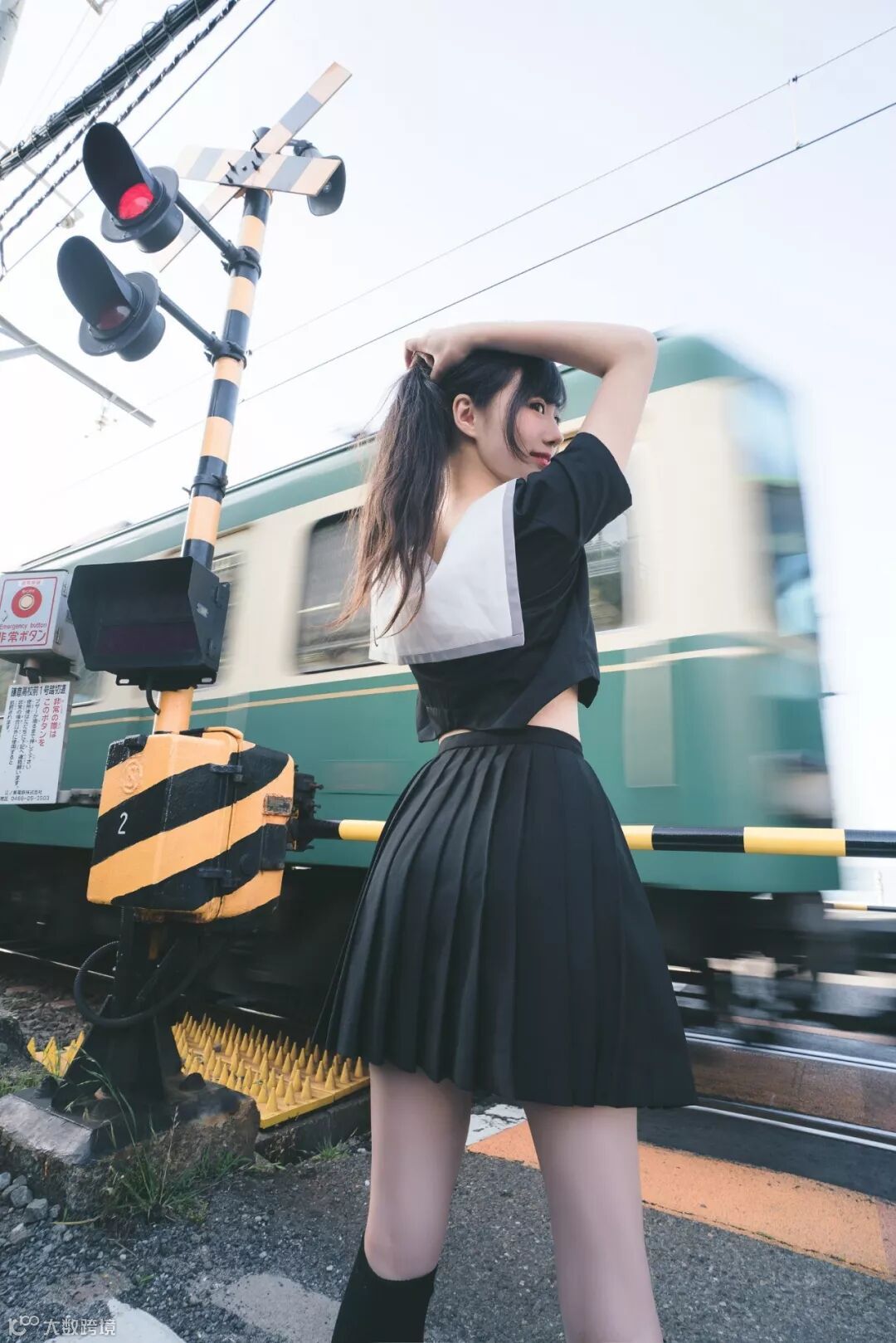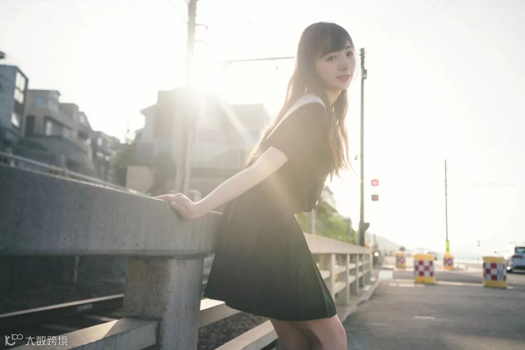 下面是镰仓高校前的重头戏,拍摄和列车间的动感照片。列车大约每20分钟一班,每次经过的拍摄时间只有十几秒钟,所以一点也不能浪费。首先开启A7R3的高速连拍,然后让模特找好最佳的动作,调小光圈这样可以降低快门速度,让行进的列车变得有动感。说说简单但是实际尝试的话还是需要试验几次,下图至少拍摄了3班列车,最终才拍到满意的效果!