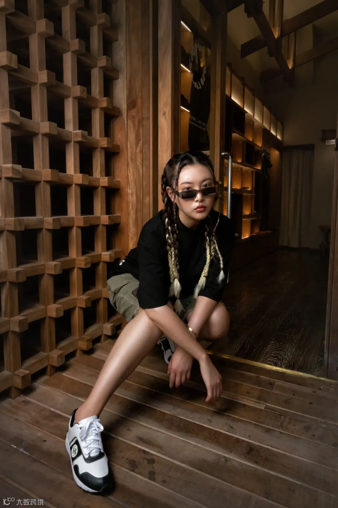 上图的场景中有一个木质的结构,所以我希望让模特进入这个环境,进行“人景结合”的拍摄。在这里,使用闪光灯加柔光箱进行补光,可以获得更加有质感的画面。