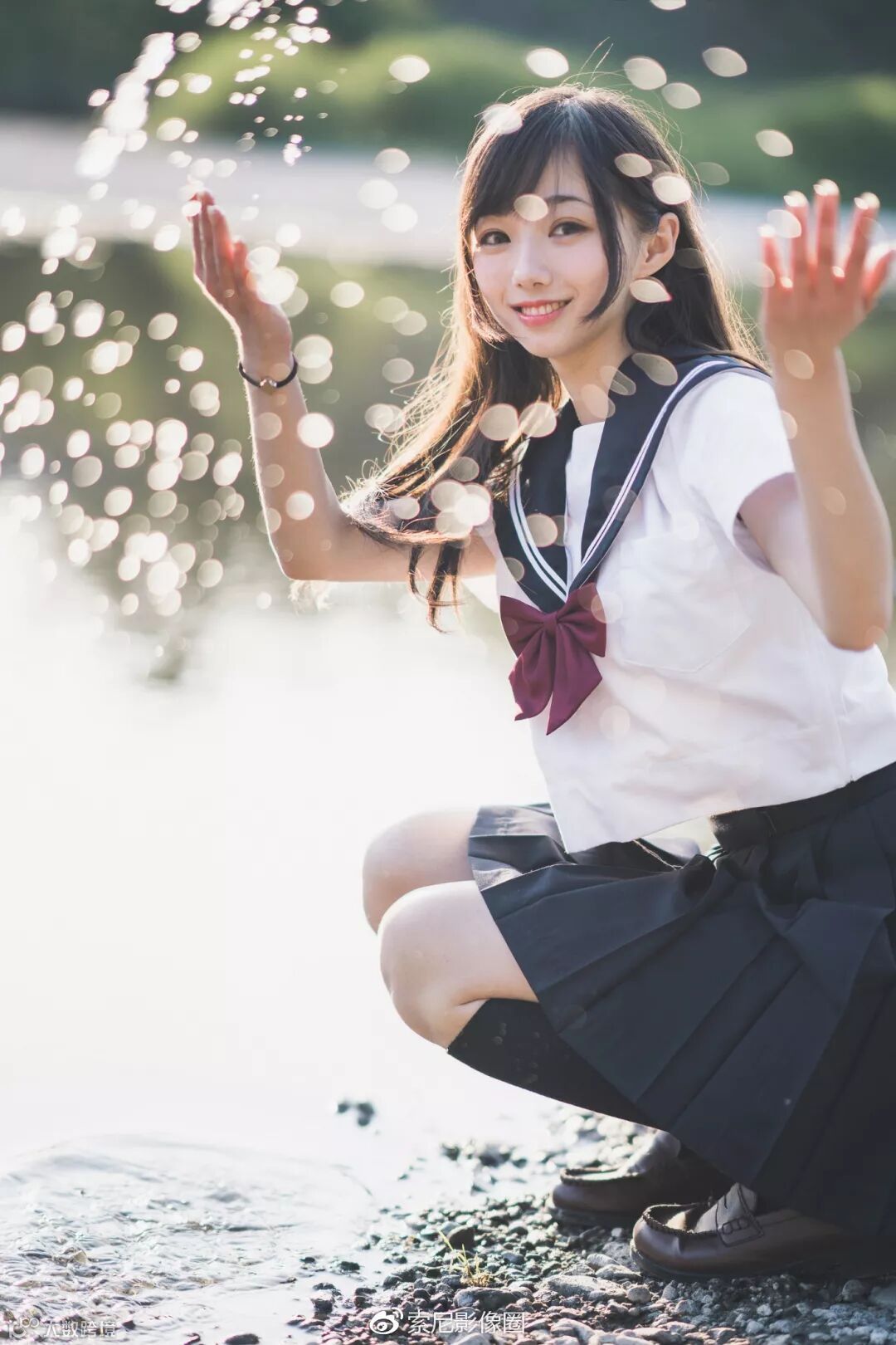 让模特在逆光的位置上对着摄影师泼水,光线照射在水滴上,用大光圈镜头拍摄形成了完美的前景,而A7R3眼控对焦即使在水滴的干扰下也没有失去焦点。