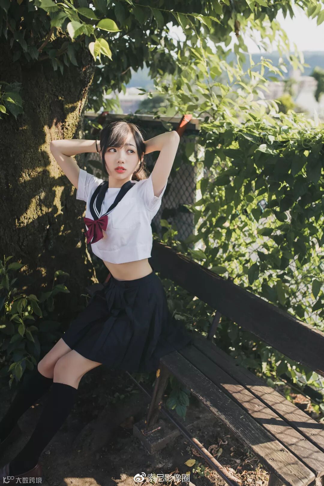 拍摄时将模特放在树荫一侧,避免阳光直射给脸部带来过硬的光线。同时,A7R3优秀的宽容度水平,保证了高光不过曝,暗部细节更完整。