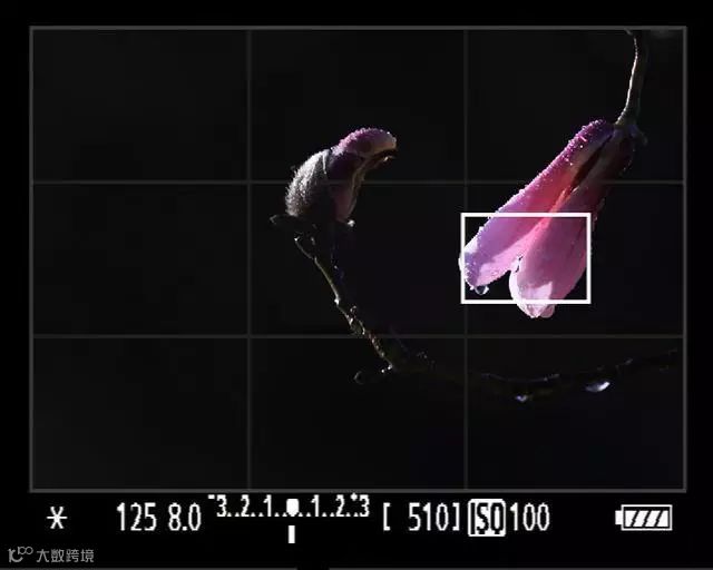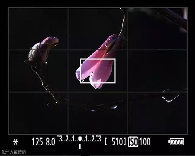 针对主体测光对准想要重点表现的主体,半按快门按钮测光,观景器下方显示光圈和快门值
