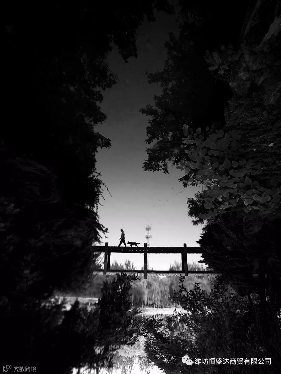 作品简介:桥上走过的主人和狗,一前一后,结伴而行。树上垂下的枝叶挡住了主人和狗,而透过水面上的倒影,拍下了主人和狗结伴而行的瞬间。