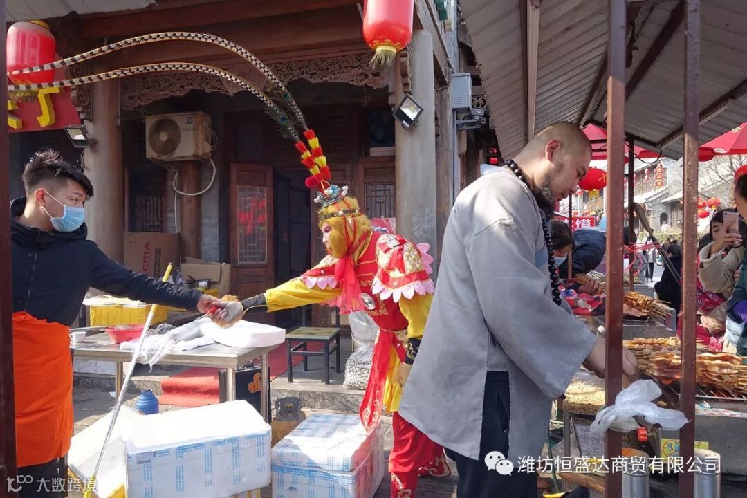 作品简介:初一青州古街庙会上,商家为了促销装扮成悟空和鲁智深。
